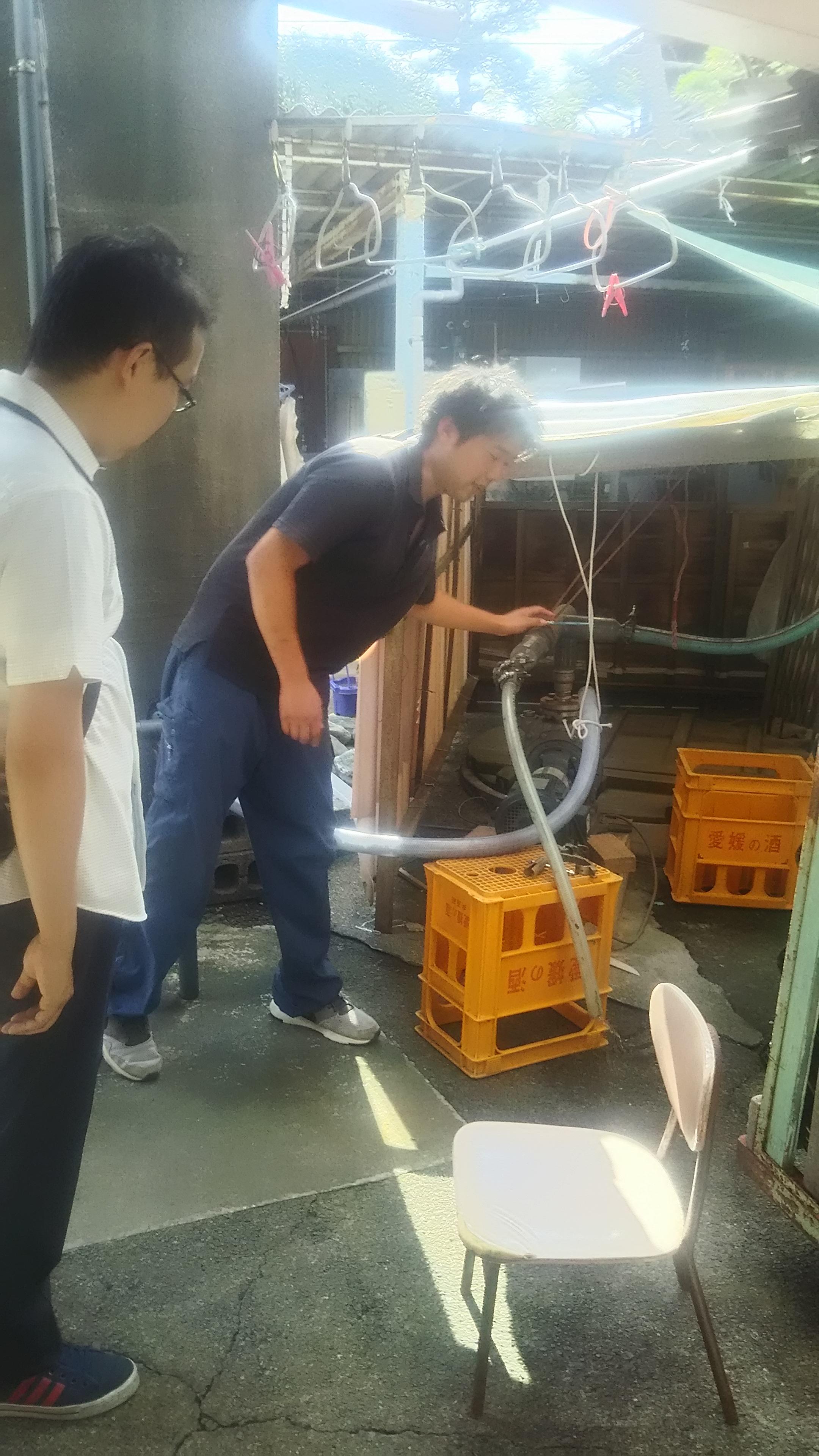 また、この地域は良質な水に恵まれた土地柄だそうで、蔵元内にも二つの井戸があり、酒造りはもちろんの事、普段の生活にも活用しているそうです。仕込み蔵の中は決して広いとは言えず、設備も最新のものが揃っている訳ではありませんが、その代わり人手を惜しまない酒造りを心がけ、その結果、高品質なお酒が生み出されているのです。