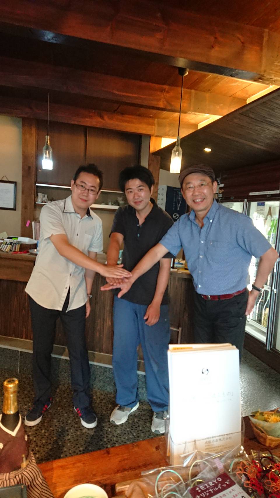 お付き合いを始めて一年、念願だった『賀儀屋』醸造元の成龍酒造さんへやっとお伺いすることができました。蔵元様には二度にわたって水戸まで足を運んでいただいており、今度は私たちが蔵元へお伺いしたいとずっと思っていました。しかも今回は、成龍酒造さんとの仲を取り持っていただいた『三ツ星食品』の桑村さんとも再会することができて二重の喜びです!