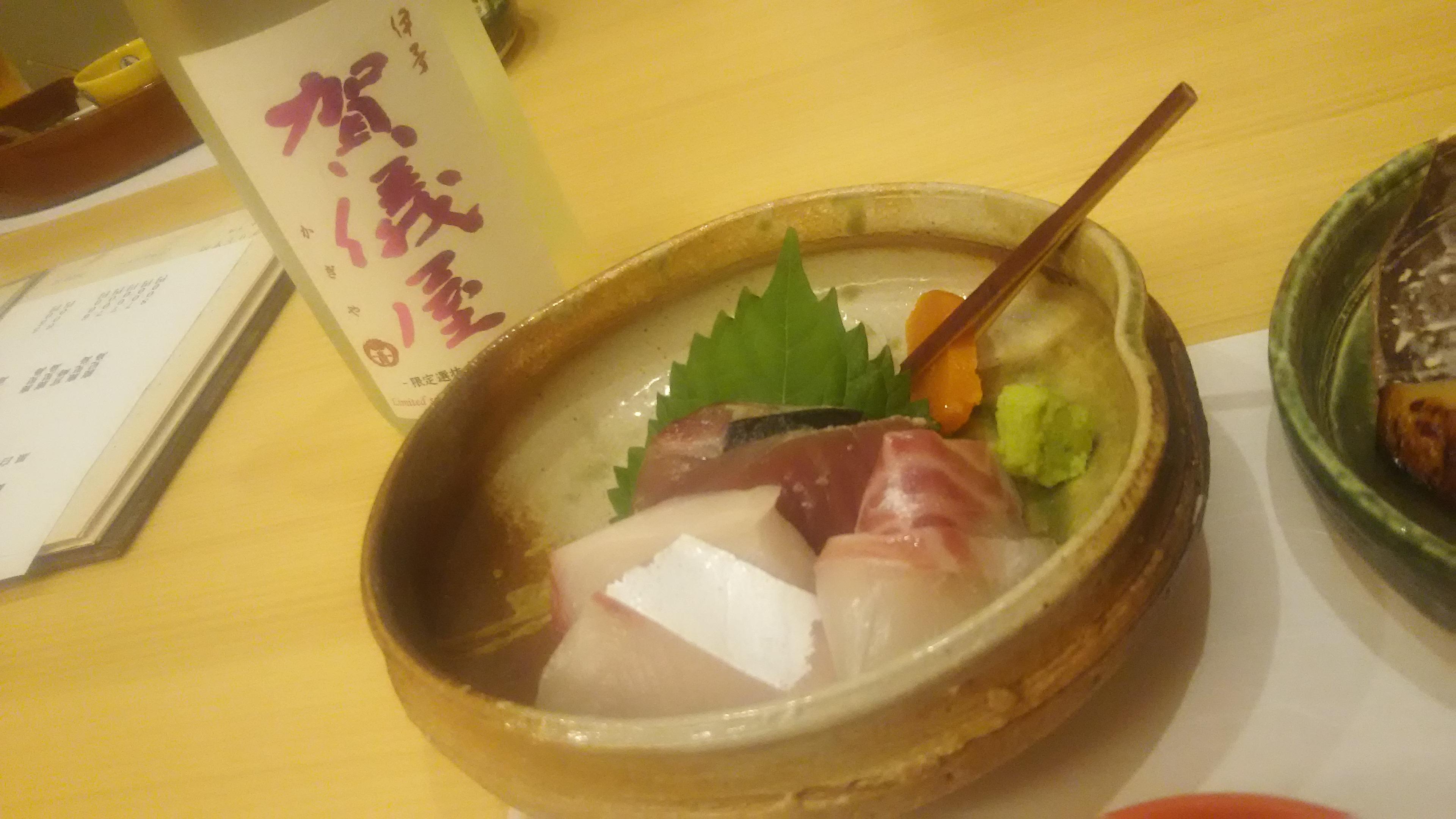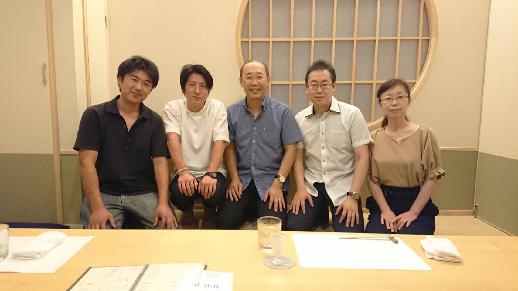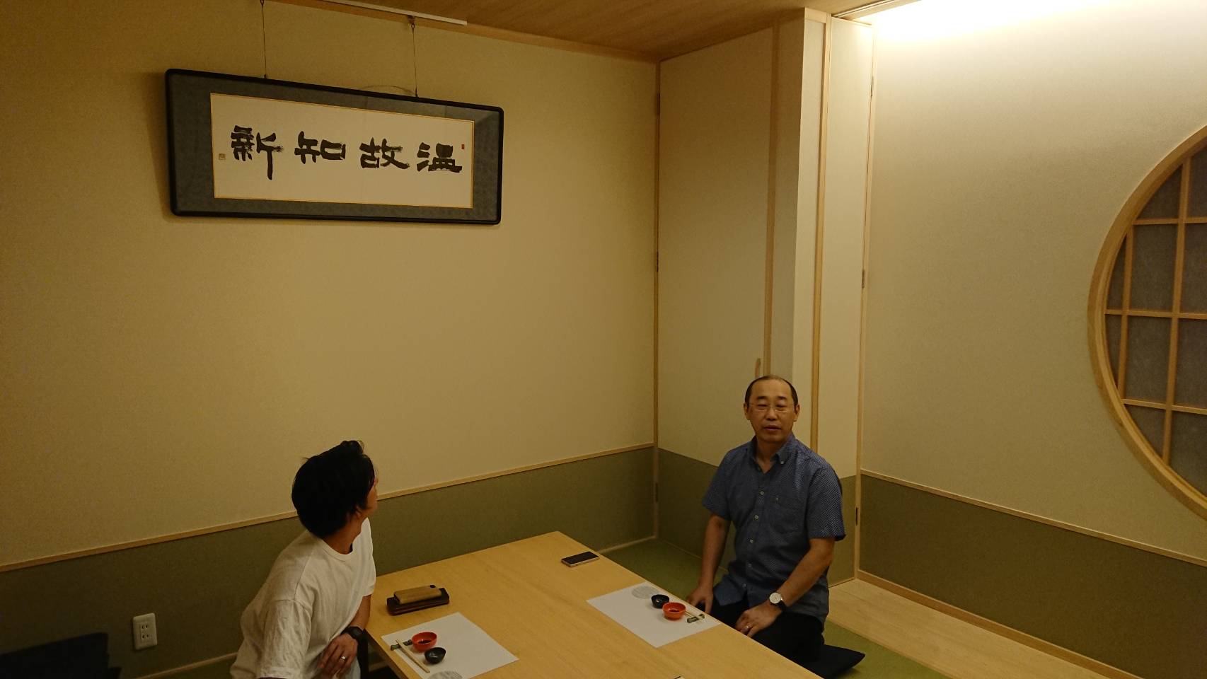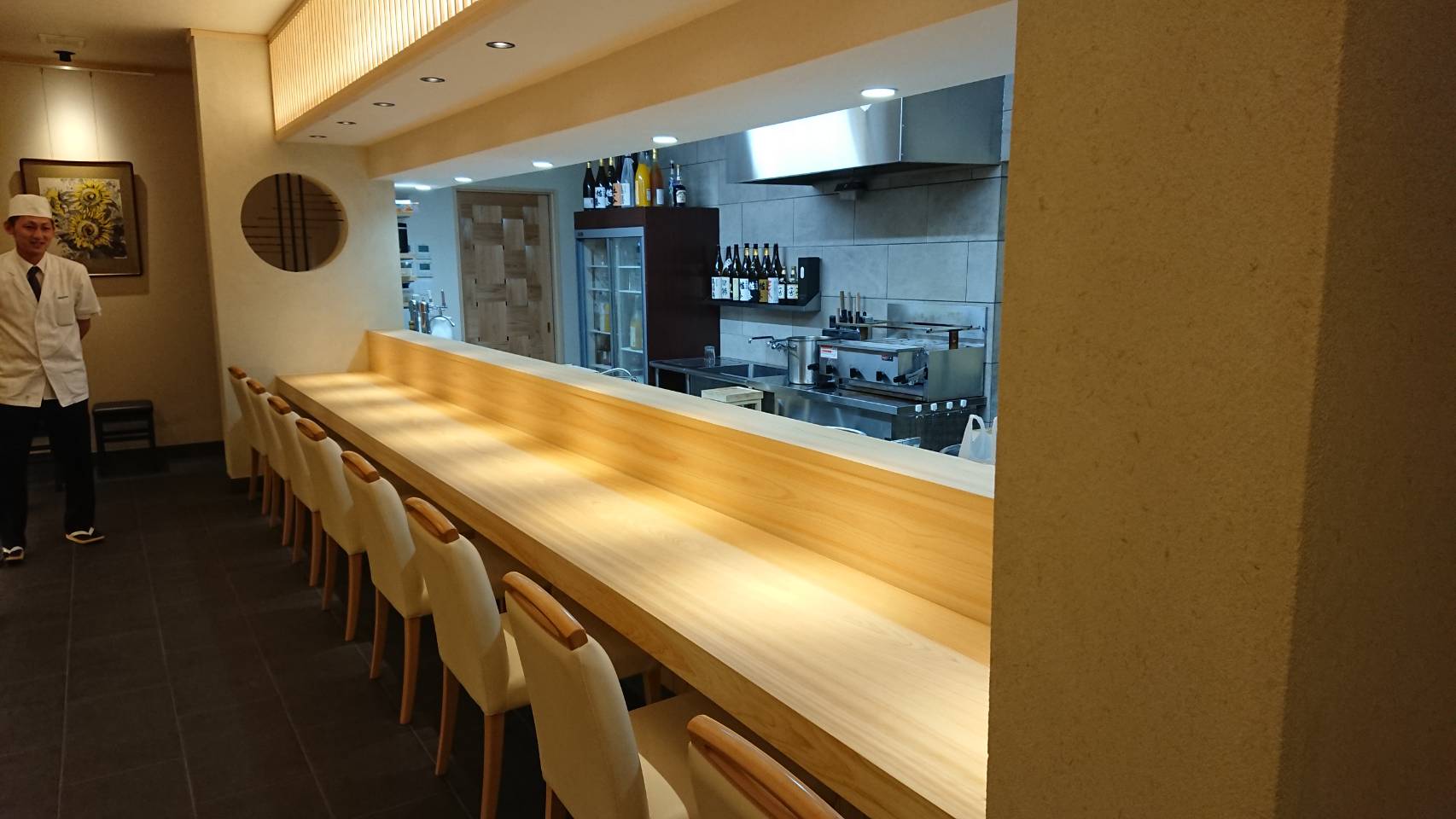今回は、三ツ星食品の桑村さんの計らいで、地元で評判の和食料理店『温故知新』さんに連れて行っていただきました。こちらのお店は、美味しい旬の食材を使った本格和食が評判で、中々予約ができない超人気店なんだそうです。お店は最近移転して新装開店したばかりだそうで、白壁がとってもお洒落な外観の一軒家で、一歩店内に入ると白木の立派なカウンターが目に飛び込んできました。見るからに高級そうな雰囲気漂う名店です。