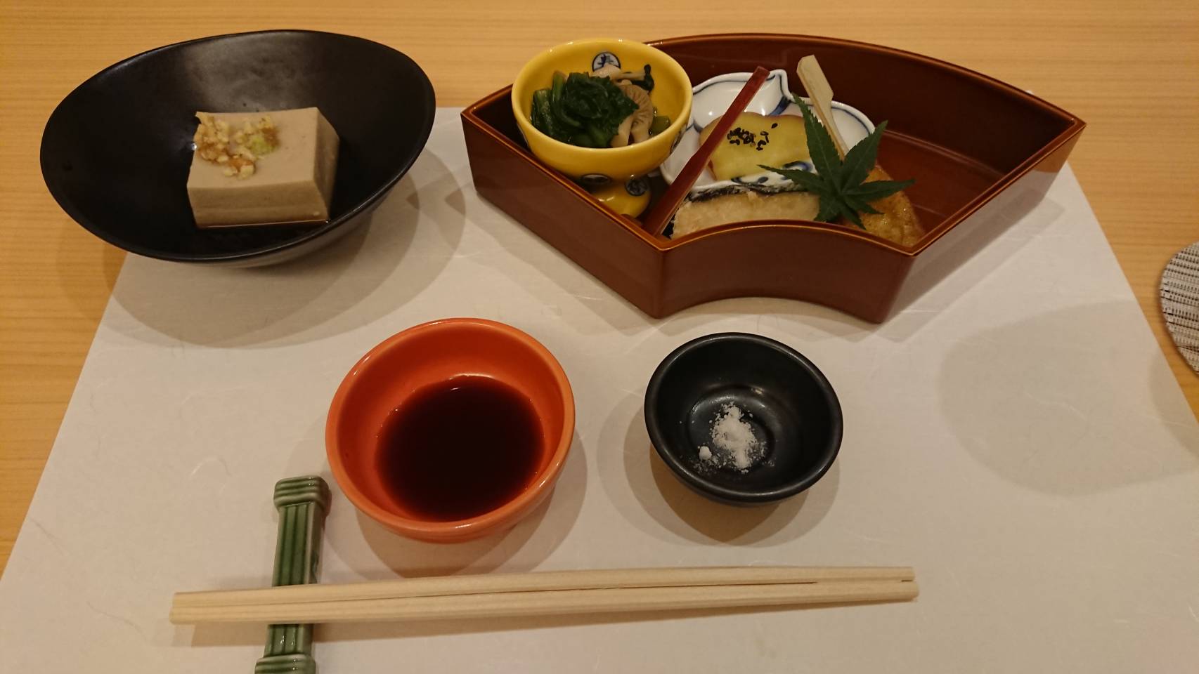 前菜の盛り合わせに手作り豆腐、新鮮な瀬戸内のお刺身、等がテーブルに並び、いよいよ日本酒に突入です!この日は、敏孝さんがご自身で仕込まれたお酒を用意してくださったので、そちらを頂くことにしました。このお酒の詳細は、まだ公には発表できませんが、敏孝さんの目指すべき味わいという事だけお話しさせていただきます。