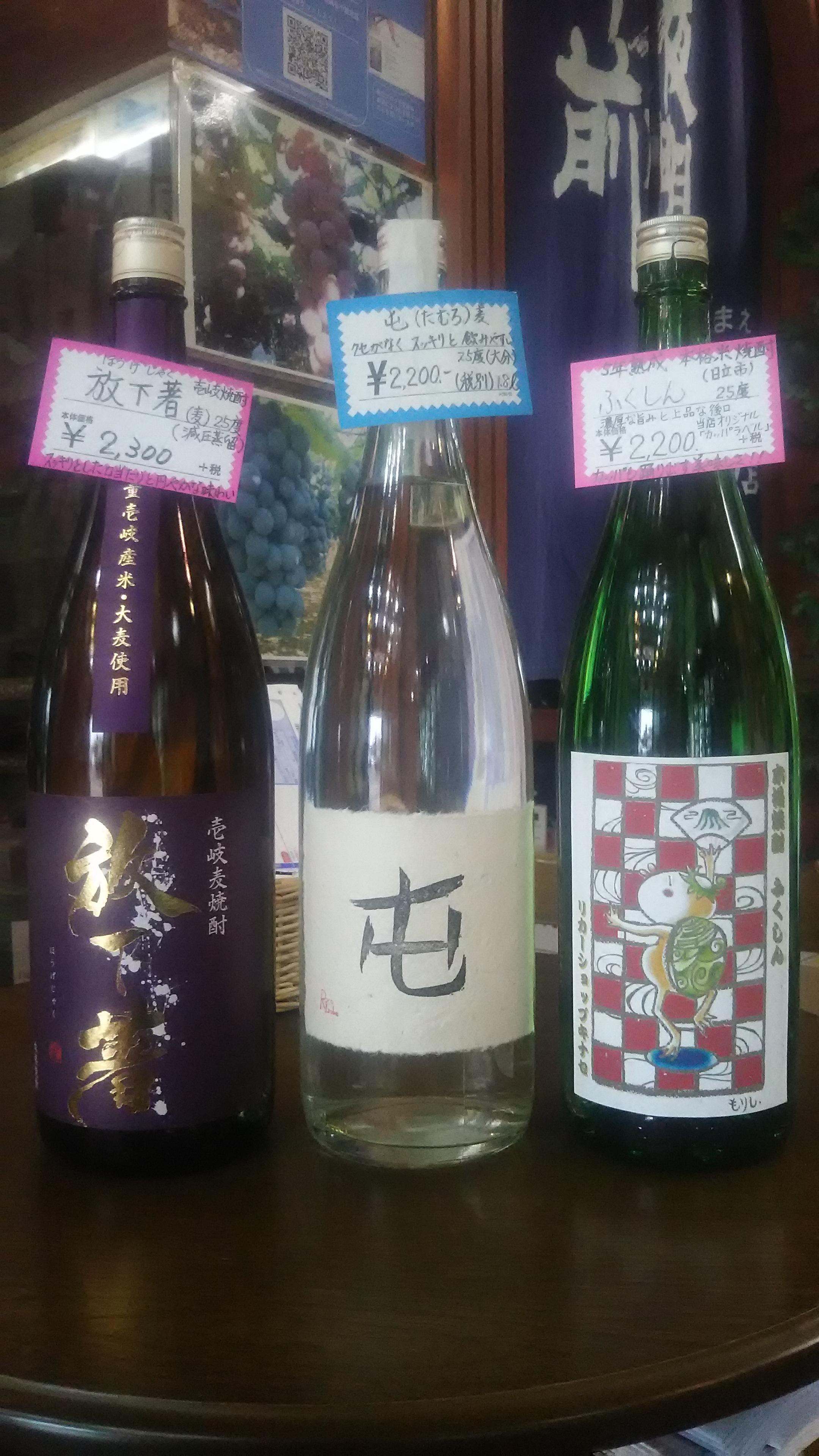 そして、麦焼酎発祥の地『壱岐の島』からは、全量壱岐産の米と麦で造られた『放下著・ほうげじゃく』がお勧めです。軽やかな飲み口の中にも、奥行きのある麦の香りと米の甘みが楽しめる逸品です。