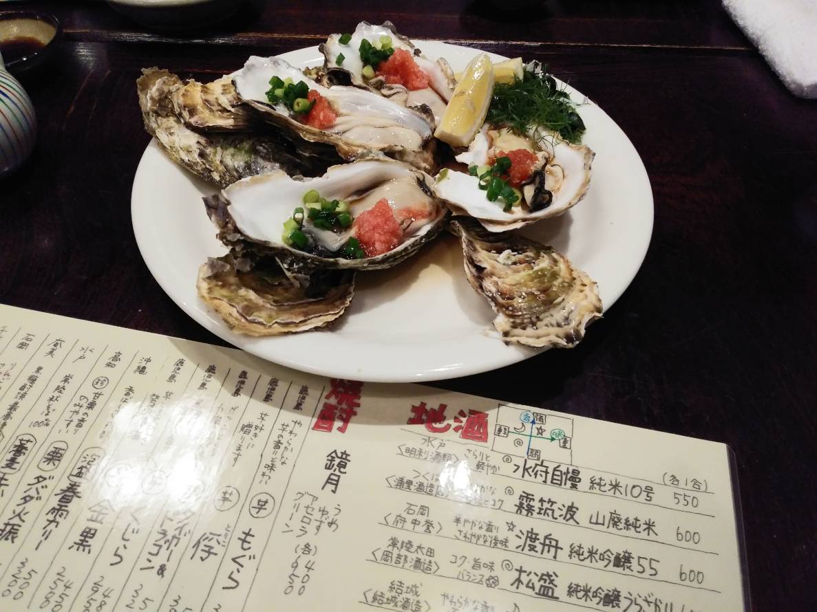 続けて、入荷したばかりという『岩ガキ』やぷりっぷりのイカの丸焼きを頂きました。どれもが新鮮でおいしかったです。いやぁ~、それにしても料理やお酒の出てくる時間の早いこと、早いこと、注文したと思ったら、、あっという間にテーブルに運ばれて来るんですよ~。早くて、旨い!最高ですね(笑)