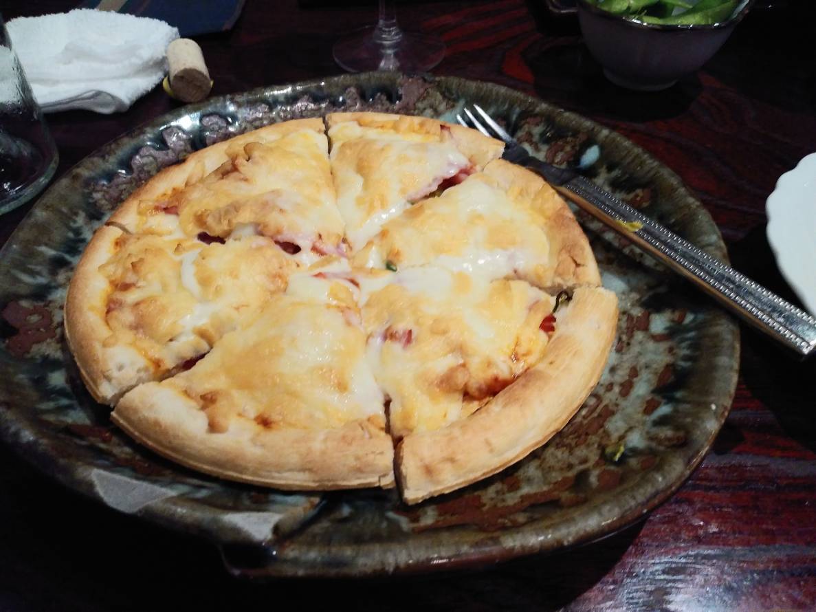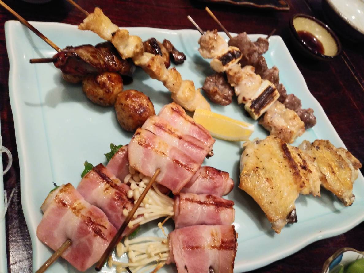 続けて麦焼酎のハイボールに合わせて、お店一押しの『特製ピザ』を頂きました。これがまた、生地がフワフワでトロリとした濃厚なチーズの具合が旨いんですよ~。焼き鳥の盛り合わせは、鶏、豚、牛、とバリエーションがとても豊富で、焼き鳥好きのみどりさんも大絶賛でした!