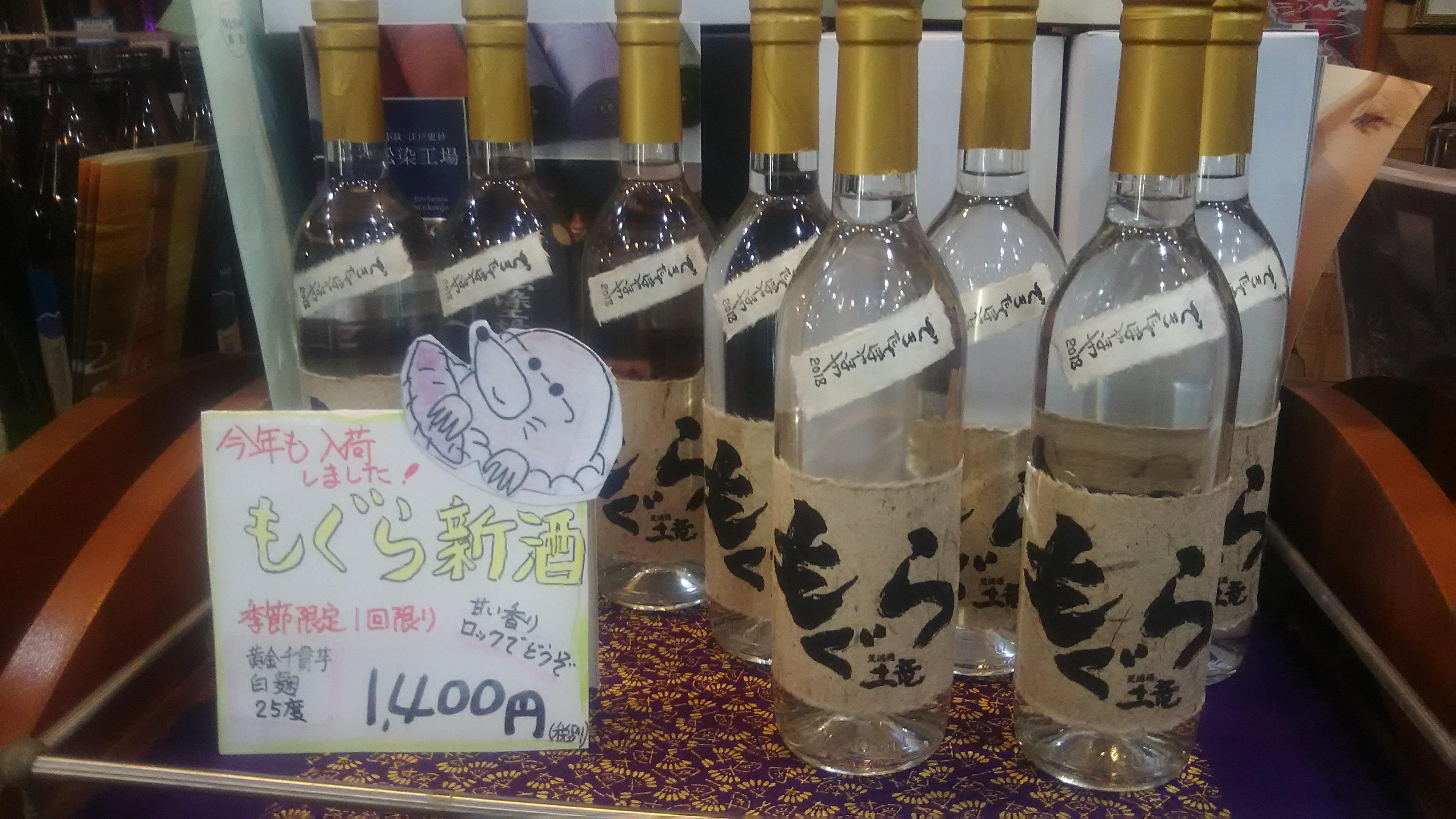 そのような、とってもデリケートな芋焼酎の新酒の中にあって、何年にもわたって安定した人気を集めているのが、本日ご紹介する『できたてほやほや・もぐら』なんですよ!発売当初は、ずんぐりとした丸い透明瓶に詰められていましたが、その後フレッシュで爽やかな味わいをイメージして、透明のワインボトルに詰められるようになりました。
