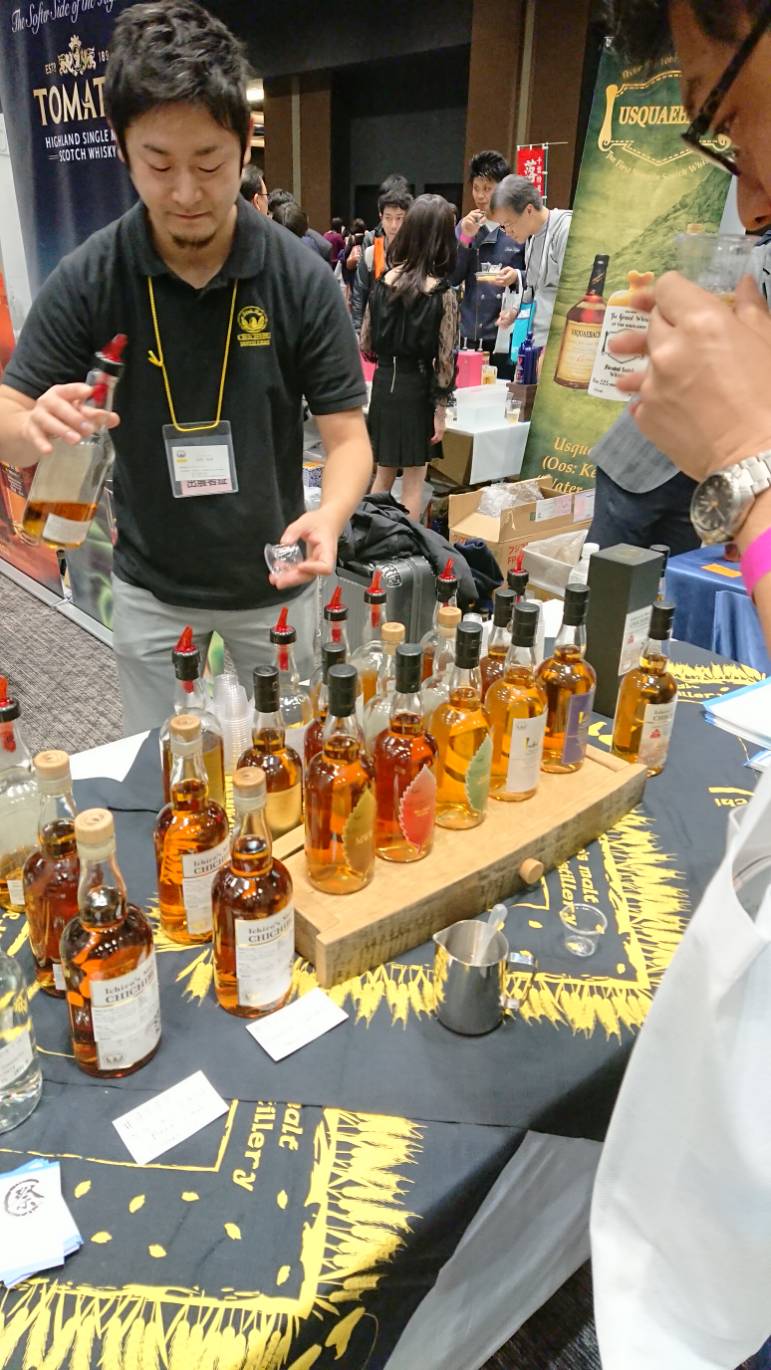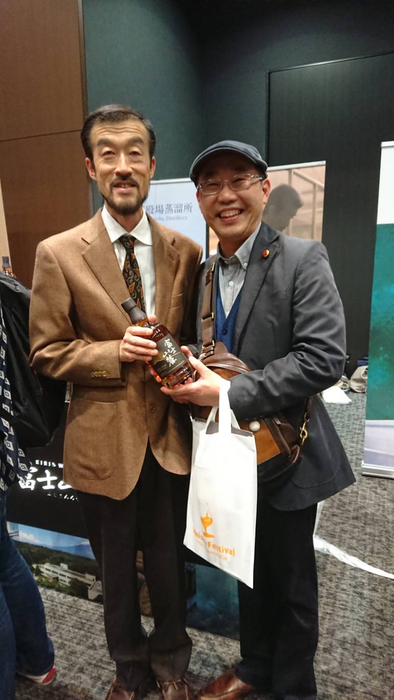 また、『マルス・ウイスキー』さんのコーナーでは、マルス信州蒸留所の折田所長にご挨拶し、製造担当の佐々木さんからは、『シングルモルト駒ヶ岳』や『和美人』の新商品について、詳しく伺うことが出来ました。続いて伺った『ベンチャーウイスキー』さんのコーナーでは、現在販売されている全商品を含めこれから発売される新作などを味わうことができました。そして、普段はメールや電話でのやり取りをしている田畑さん(肩書はディスティラー)ともお会いすることができてとても良かったです。