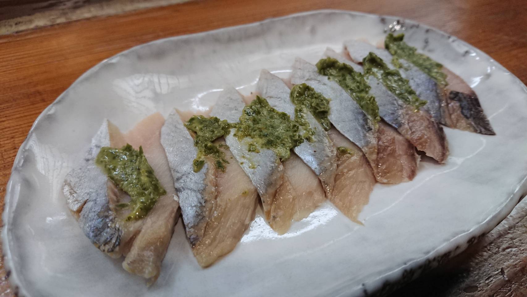 そうこうしていると、大将がこれも食べてみる?と、出してくれたのが、福島の郷土料理『鯵の会津漬け』です。上にトッピングされていた自家製の山椒味噌が秀逸で、山椒の葉の爽やかな香りが口の中に広がって、酒がどんどん進んでしまいます。