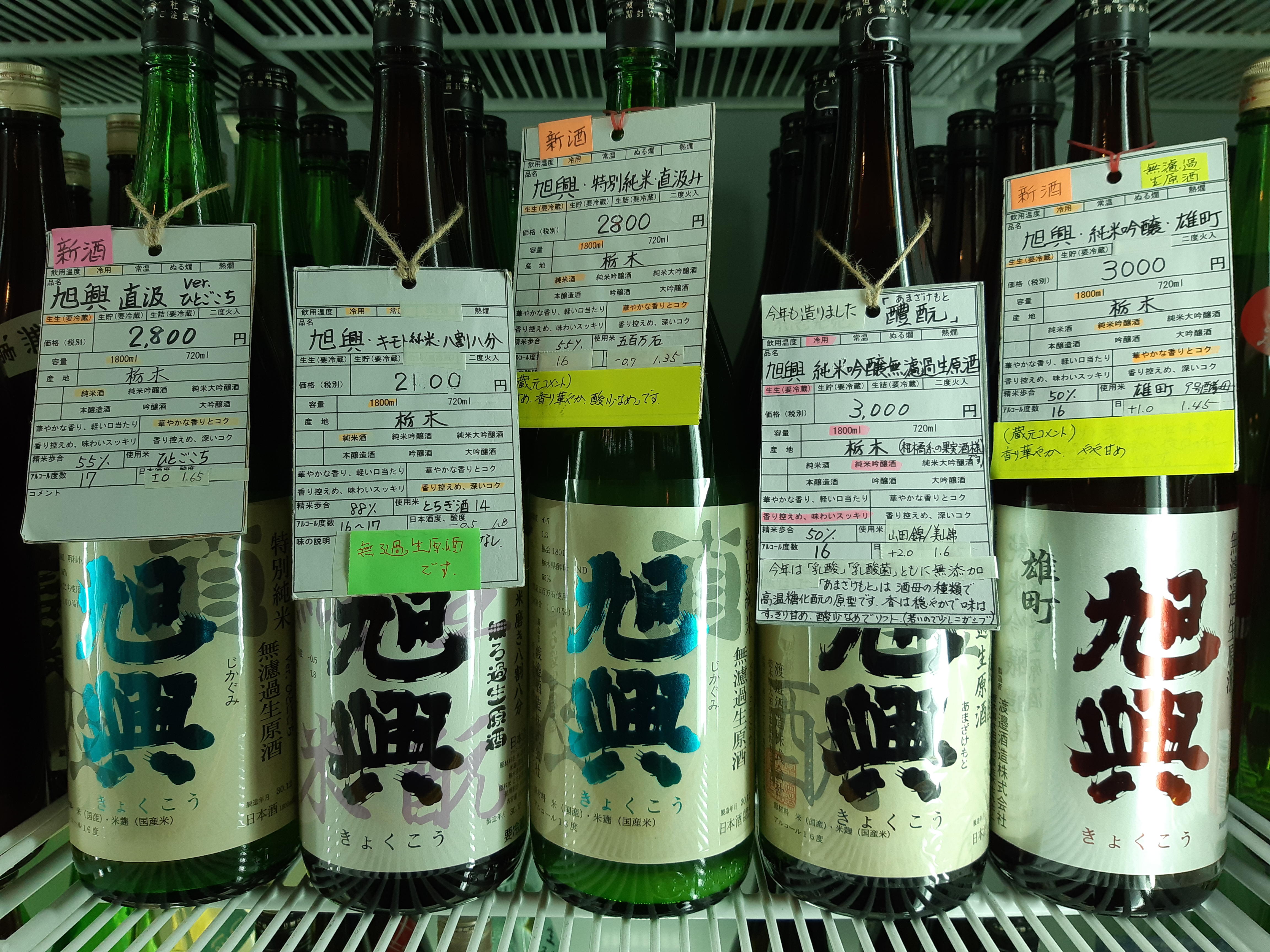 そこで今日は、本日入荷してきた栃木県の渡邊酒造さんが造る『旭興』シリーズをご紹介したいと思います。社長兼杜氏でもある渡邉さんは、卓越した技術と酒造りに対する並々ならぬ情熱に溢れ、色々なタイプのお酒を造っています。そのどれもが個性的で、多くのファンを魅了しています。