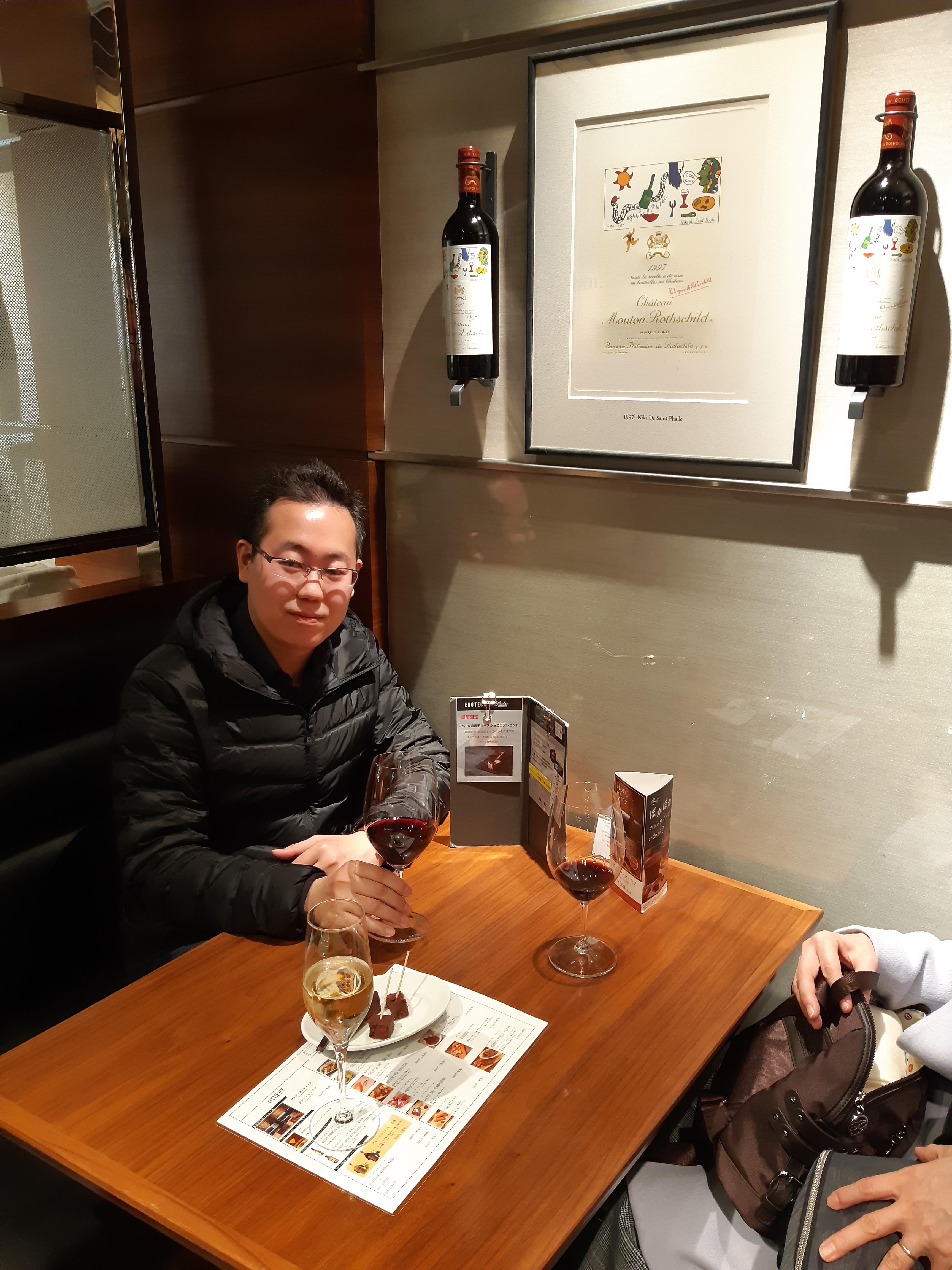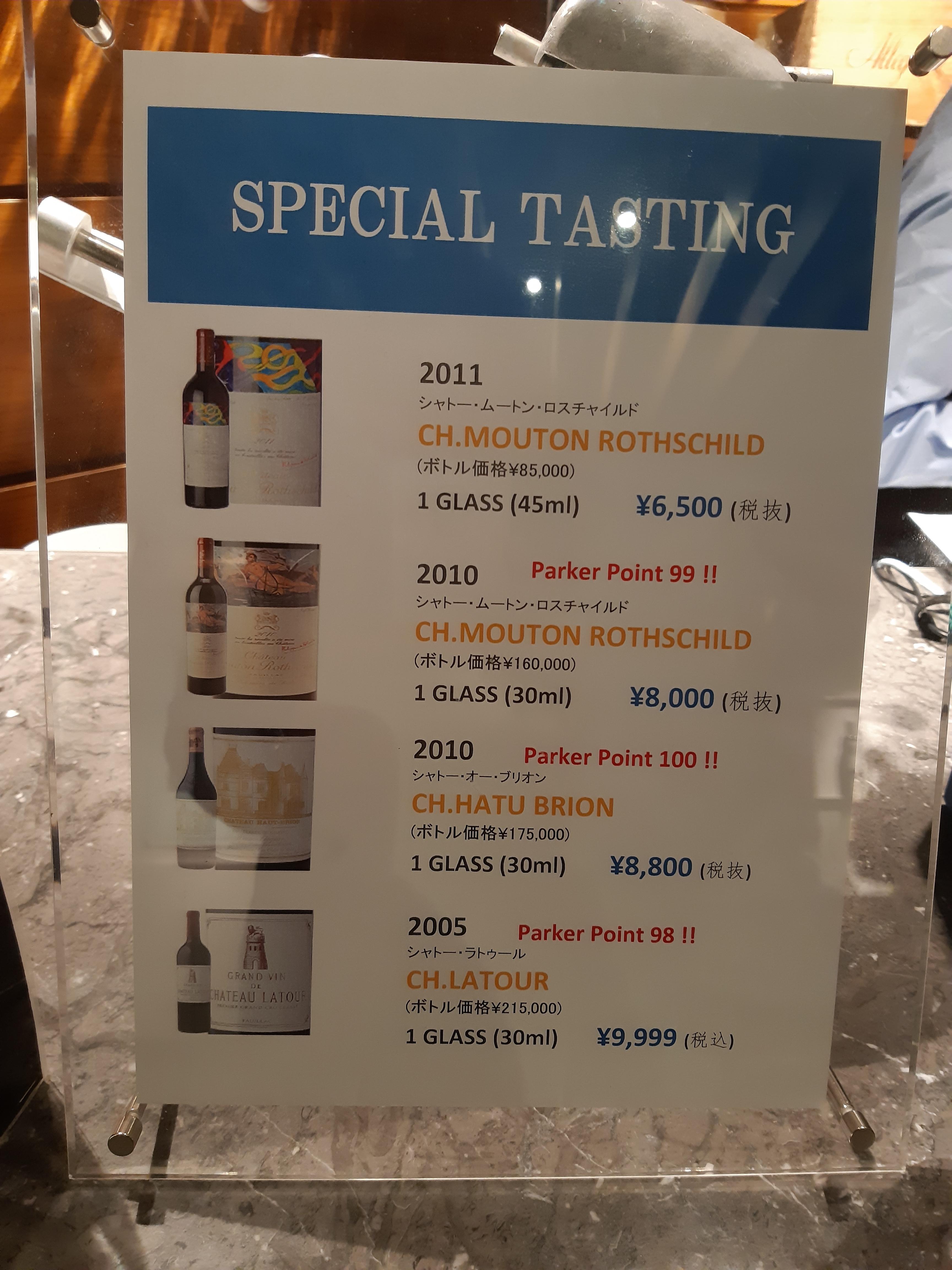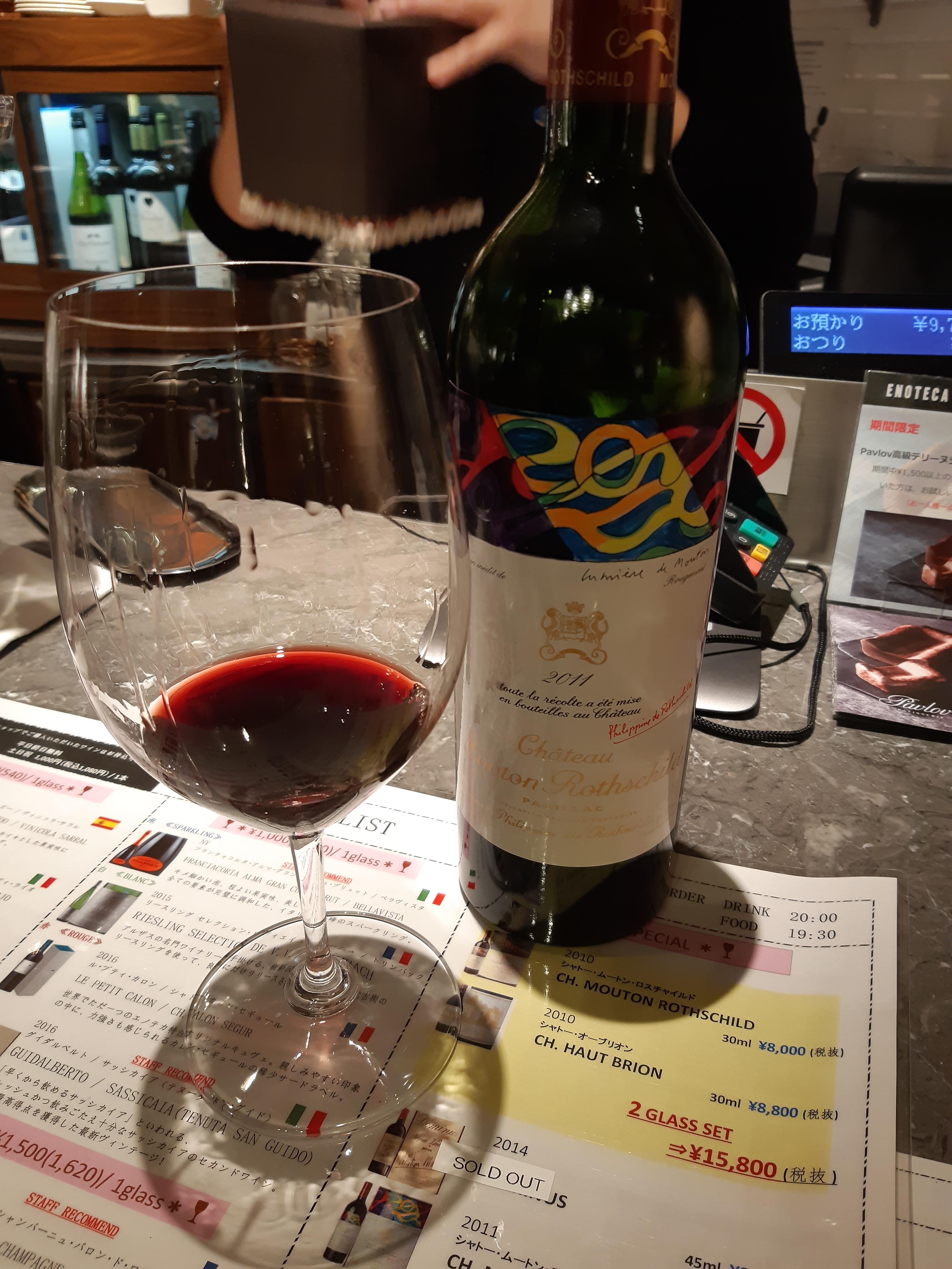 そして、今回のアンテナショップ巡りのもう一つの目的。こちらが最大の目的と言っていいくらいなのですが、『銀座シックス』の中に入っているワインショップ『エノテカ』で『シャトームートンを飲む』を実行いたしました!!シャトームートンはフランスボルドーの5大シャトーのうちの一つで、超高級ワインです。ワインを知っているもの、扱うものにとっては憧れのワインの1本です。そんなワインを銀座エノテカでは、グラスで飲むことができます。当然それ相応のお値段はしますが、ムートンを実際に飲むなんて、なかなかできないことですし、よい勉強と経験になります。