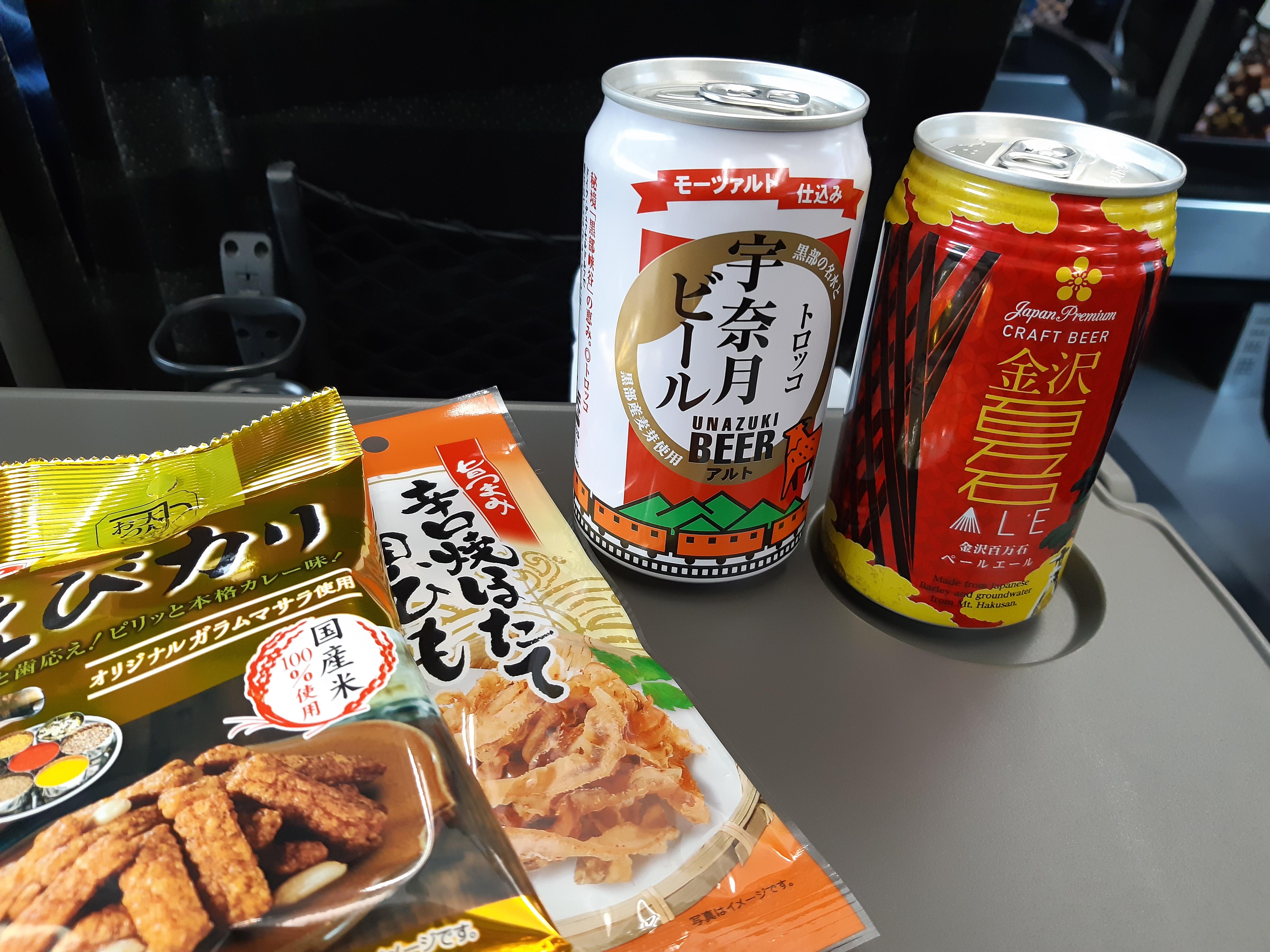 この後、群馬、和歌山、富山のアンテナショップを巡り、お土産も買ったし、色々と試飲もできたし、そろそろ歩き疲れてきたので、まだ日は明るかったのですが、もう十分に満足したので水戸に帰ることにしました。帰りの車内では、お土産の富山・宇奈月ビールと金沢百万石ビールを飲みながら、盛りだくさんだった一日を振り返りつつ、いつの間にか眠りに落ちてしまいました(笑)