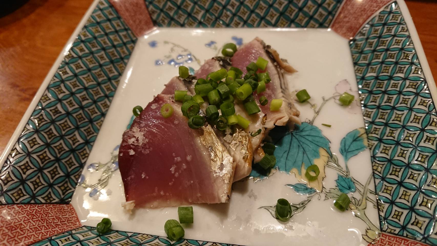 その後も、『真鯛のカブト焼き』と『カツオの藁焼き』と、続々と旬の味覚が登場してきて、いつの間にかお腹もいっぱいになってきました!スモーキーなカツオに合わせて、『無一物』をお湯割りに切り替えて、第二ラウンド開始です。