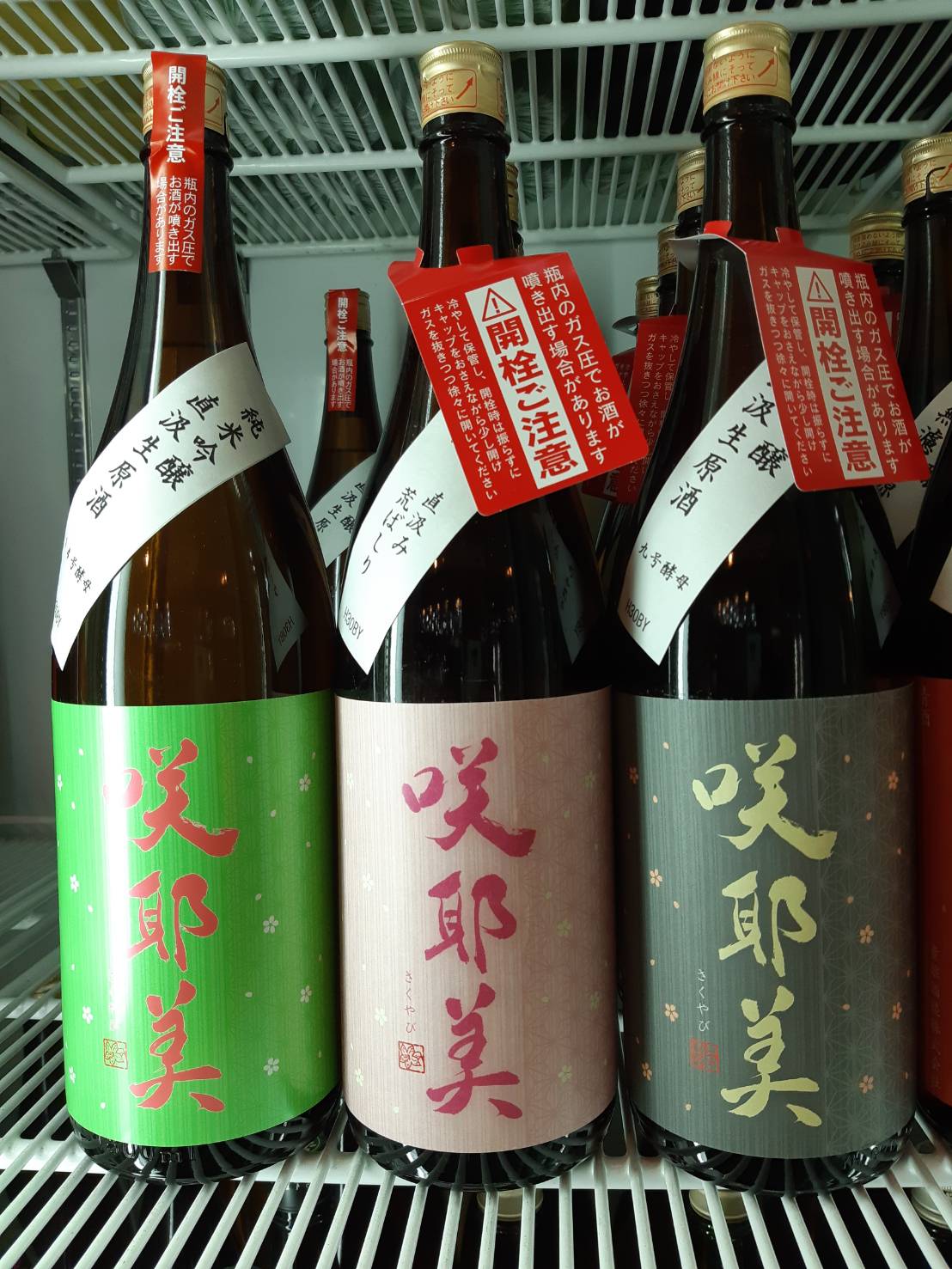 『咲耶美』の代表銘柄と言えば、華やかな香りが持ち味の通称『ピンクラベル』と、しっかりとした味わいと後口のキレを持つ『グレーラベル』の二種類で、他にも季節限定品として『ピンクラベル』の夏バージョンの『ブルーラベル』、『グレーラベル』の秋上がりの『オレンジラベル』があります。