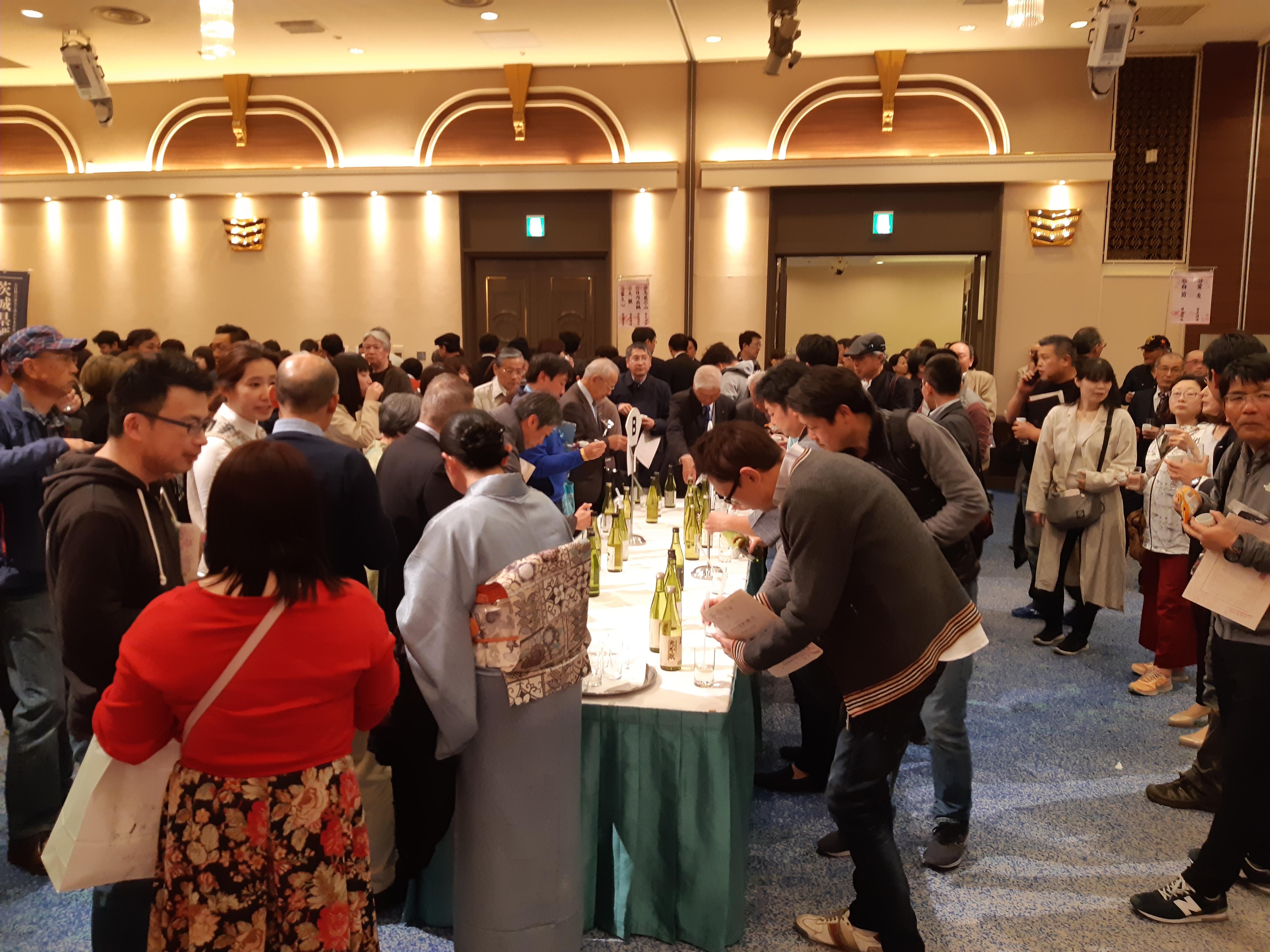 昨日は、平成最後となる『茨城の地酒、新酒を利く会』に参加してきました。茨城県の酒造組合が主催する日本酒の会とあって、県内25の蔵元が一堂に会し、120銘柄を超える日本酒やリキュールが出品されました。各蔵元様のテーブルが会場を取り囲むように配置され、中心には鑑評会出品酒のコーナーが用意されていました。