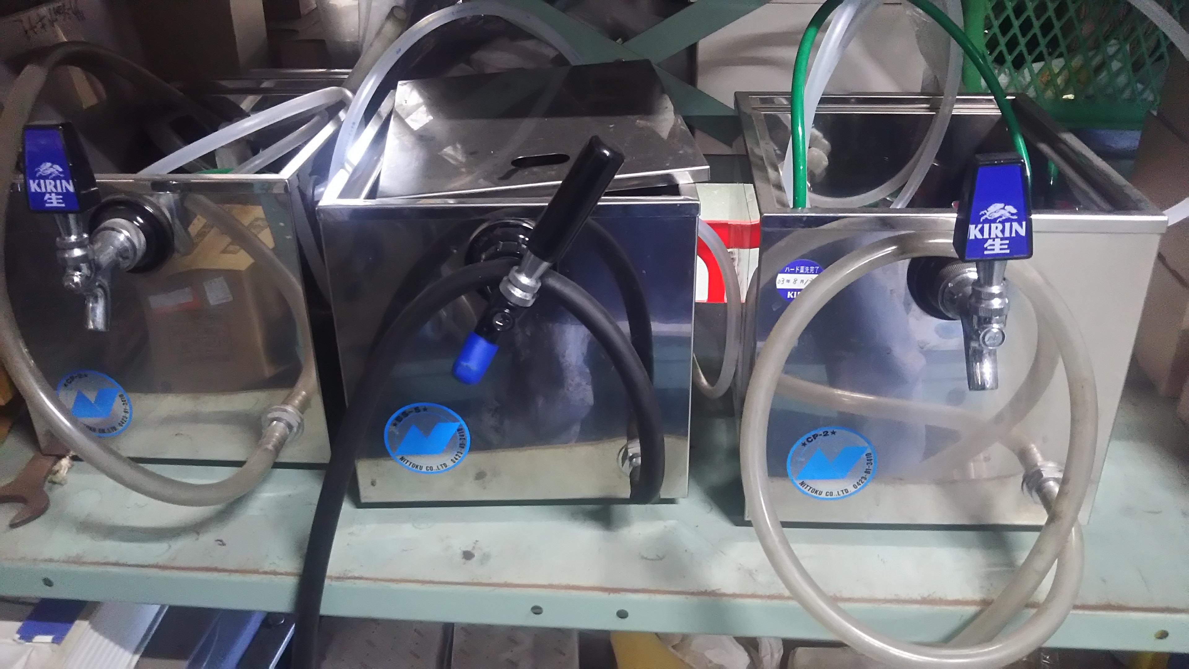 そんな単純な思い付きから始めたのが、当店の『樽生ビールサーバーの貸出しサービス』です。私が酒屋を継いだ28年前から、本格的な『氷冷式サーバー』の導入を決め、毎年、少しずつその台数を増やしてきました。現在は、大型のビールサーバー2台と小型のビールサーバー7台の計9台を保有し、生ビールの使用容量に合わせて貸し出しを行っています。