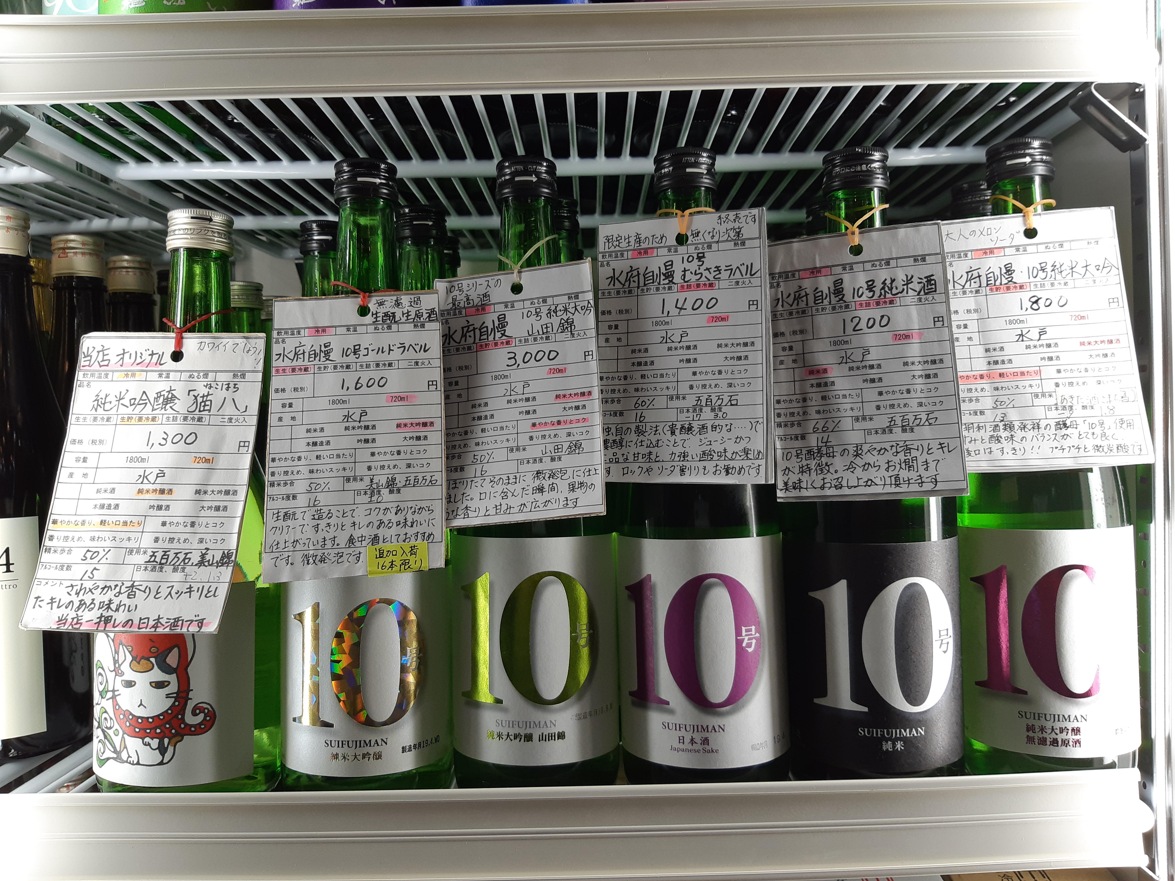 現在は、この『水府自慢10号ゴールドラベル・直汲み生原酒』を含めて、5種類の『水府自慢10号』が店頭に並んでいます。いずれも、味わいの違う個性派ぞろいのラインナップとなっていますので、ご自身の好みの味わいを見つけてみてはいかがでしょうか?また、『10号酵母』と並ぶ、明利酒類さんを代表する酵母『M-310』で醸した当店オリジナル『猫八』もお楽しみください。