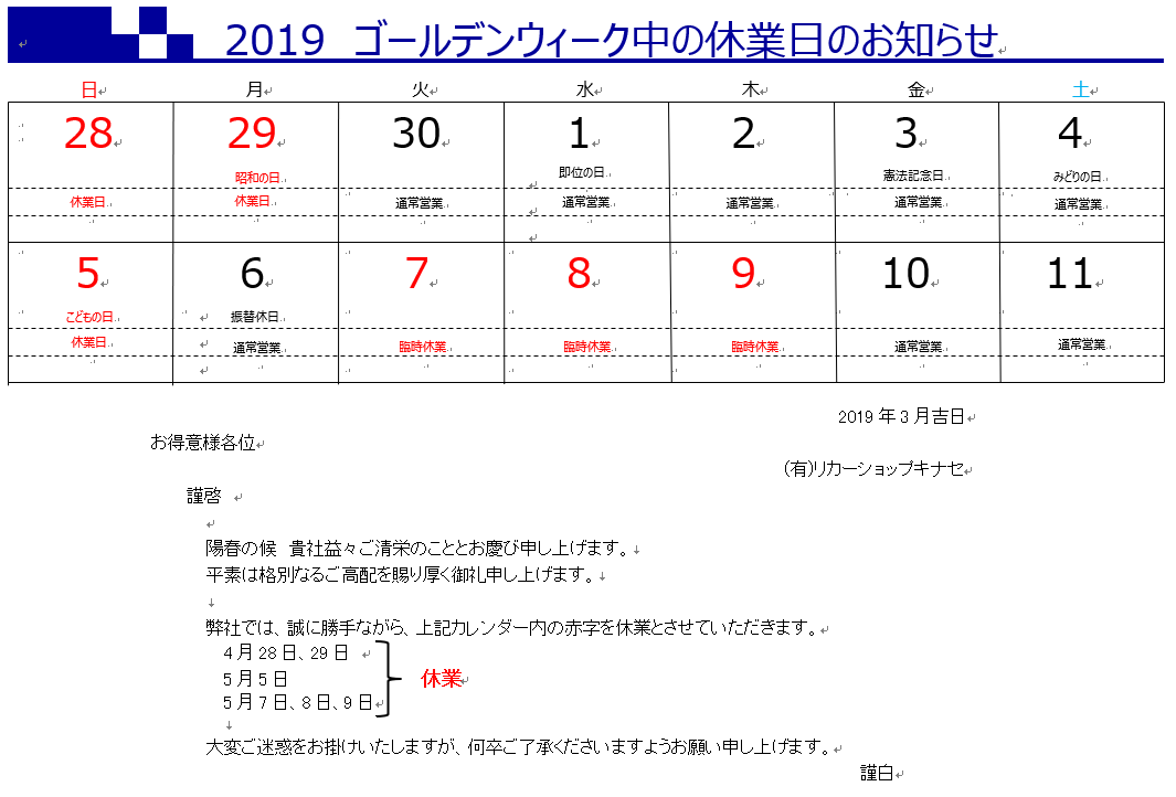 今年の、長い、長いゴールデンウイークが終わり、今日から仕事始めと言う方も多いと思いますが、私の店では、遅ればせながら今日から3日間お休みをさせて頂きます。今までに例のない長いゴールデンウイークとなった今年は、通常の日曜・祝日の休業日を変更して営業させていただきました。