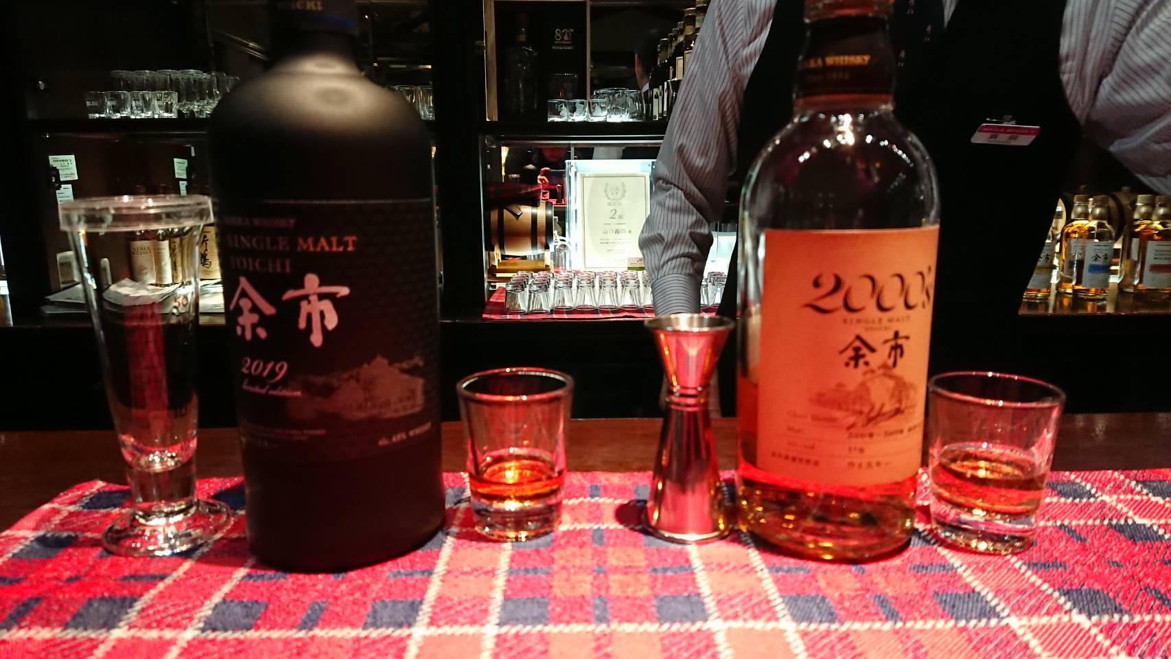 そして、蒸溜所内にある『レストラン樽』で鹿肉ステーキをいただい後は、ウイスキー博物館の中にある『ウイスキー倶楽部』での有料試飲です。今回は、幸運にも先日限定販売されたばかりの『シングルモルト余市・リミテッドエディション2019』を味わうことができました。ミリ単位で注がれる超高級品に、バーテンダーさんも緊張していました(笑)。