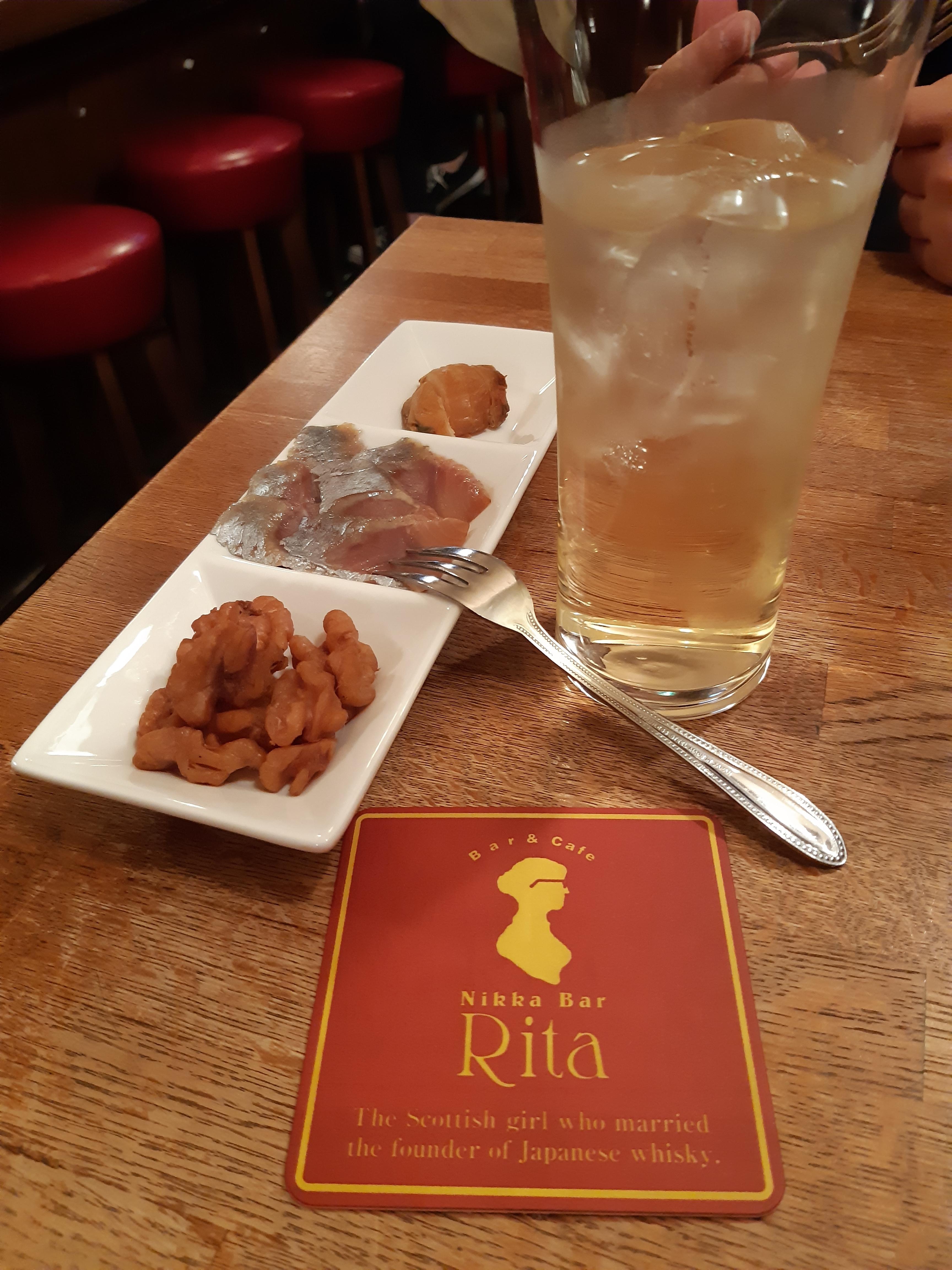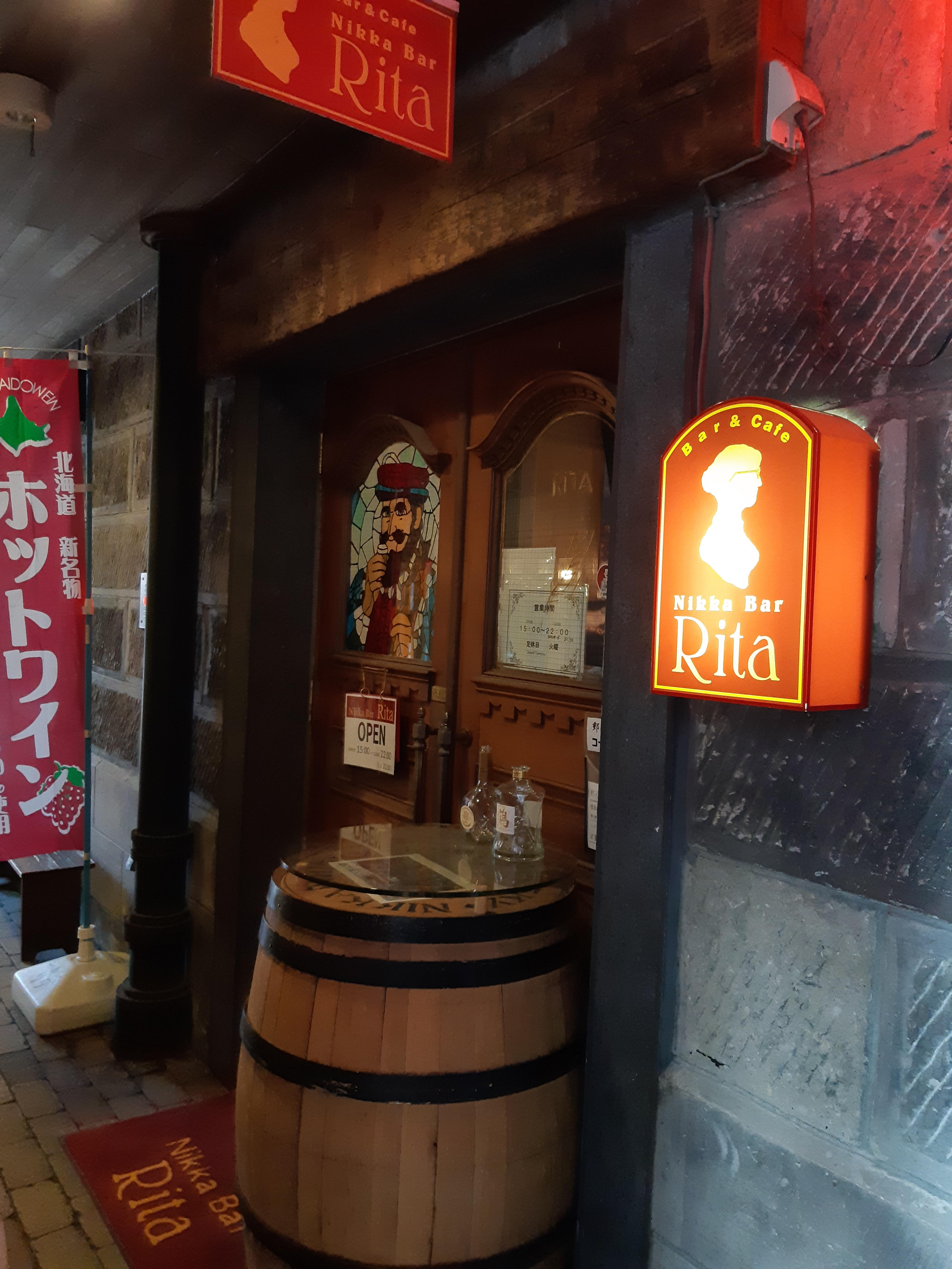 その後、小樽運河沿いを散策しながら向かったのが、ニッカファンならば一度は入ってみたいお店『ニッカバー・リタ』さんです。レトロな雰囲気が漂う(怪しげな・・)出抜小路の奥まったところにひっそりとそのお店はあります。髭のおじさんの扉を開けて店内に足を踏み入れると、カウンター越しにはレアなボトルが所狭しと並んでいて、思わず見入ってしまいました。