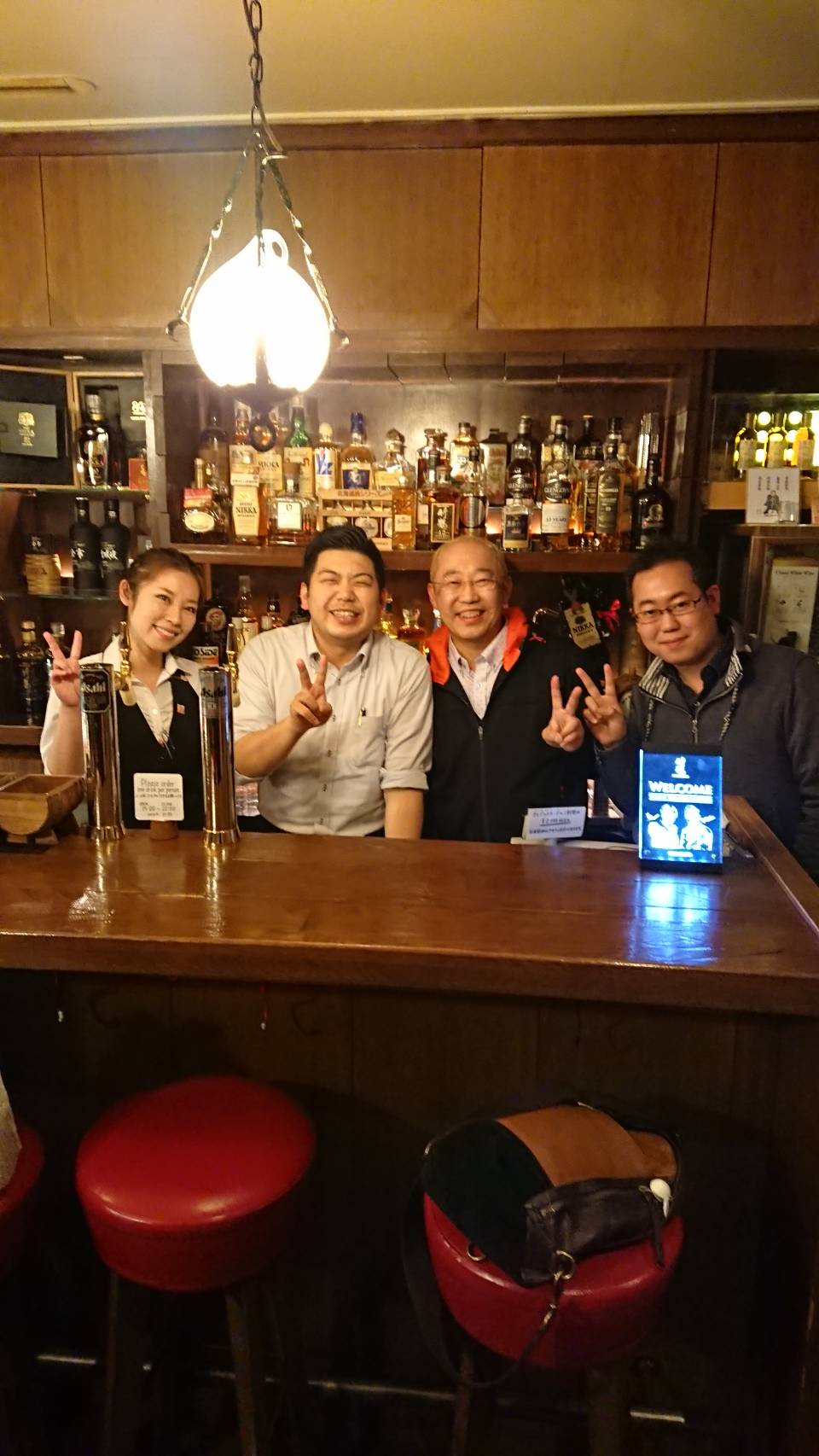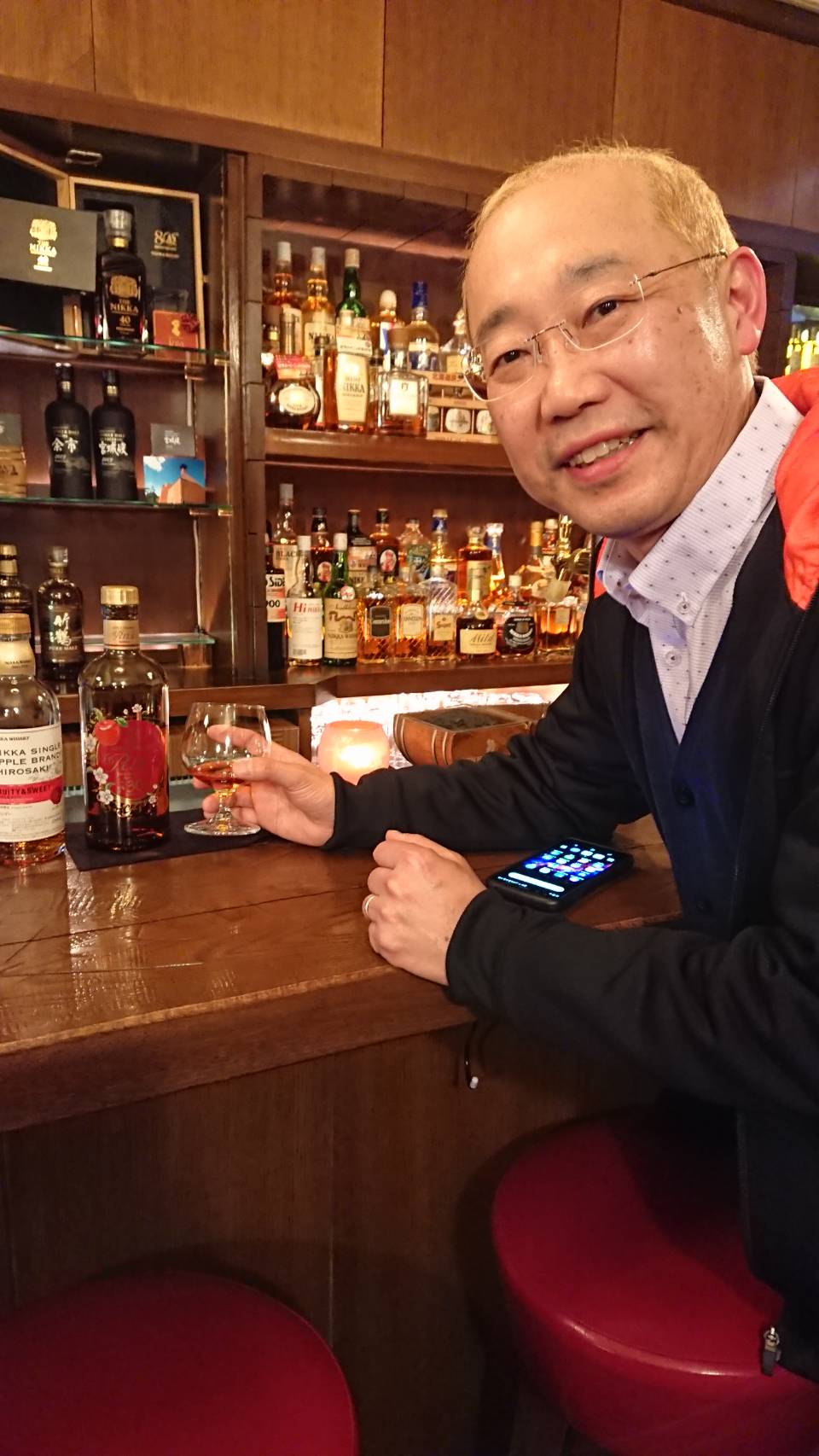 続いて、地元ならではのニッカブランデーXOの飲み比べ『ぶどう&リンゴ』と『ニッカ・シングルアップルブランデー弘前12年』を堪能しました!そして、ダメもとで聞いてみたらアップルブランデーの30年限定品『リタ』があると言うので、迷わずお願いしました。最後にカウンター越しに記念写真を撮ってお店を後にしました。