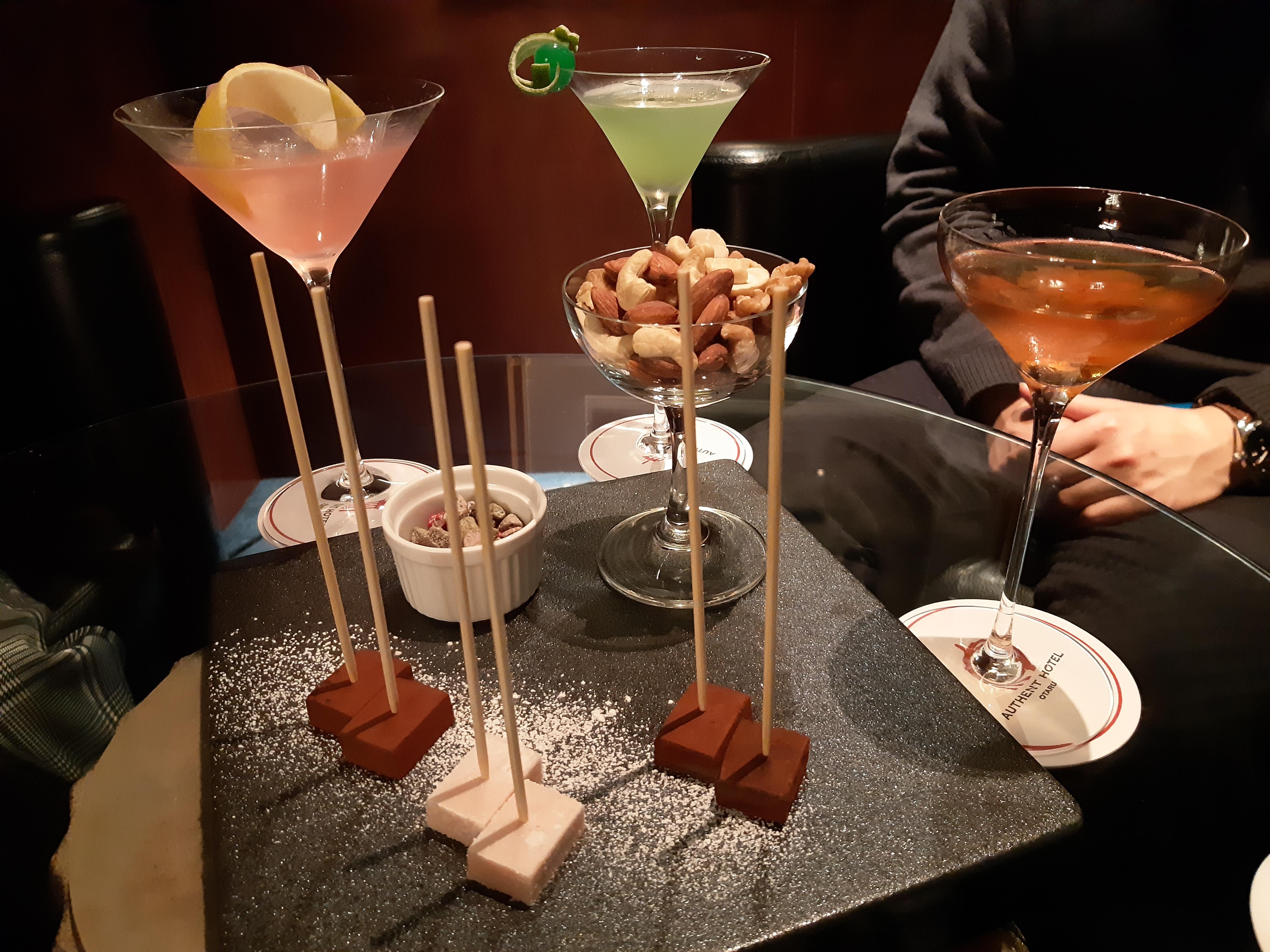 そして、小樽の夜を締めくくるのは重厚感漂う『オーセントホテル』のメインバー『キャプテンズバー』です。イタリアのスーパーカーにも使われている本革のソファーに寛ぎながら、卓越した技術を持つバーテンダーさんが創る様々なカクテルを楽しませて頂きました。