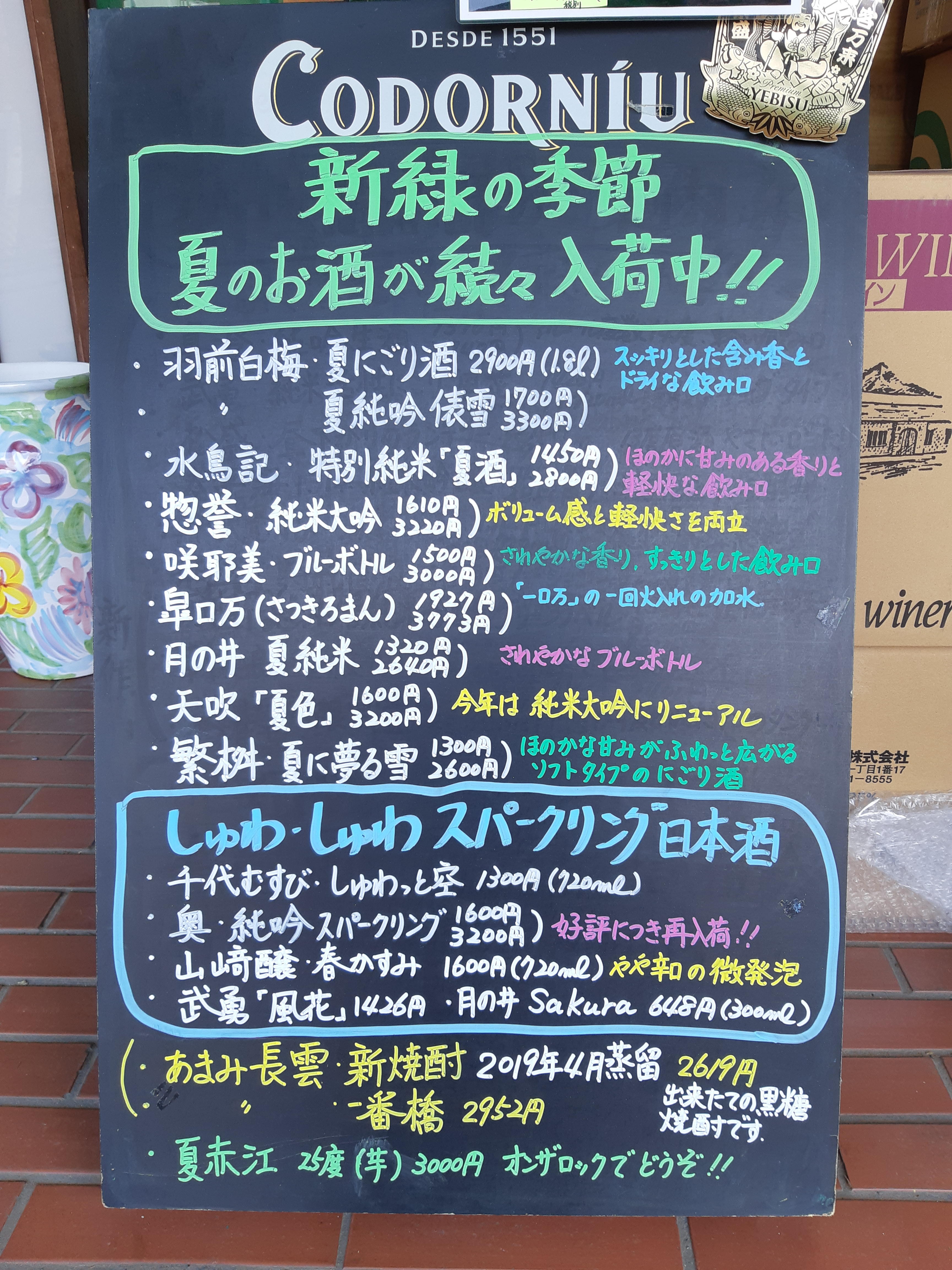 ゴールデンウイークが一段落したと思ったら、もう五月も半分が過ぎてしまっているではありませんか・・!連休前から入荷が始まった今年の『夏酒』もすでに予定の半分以上が入荷しており、早く案内しないといけません!