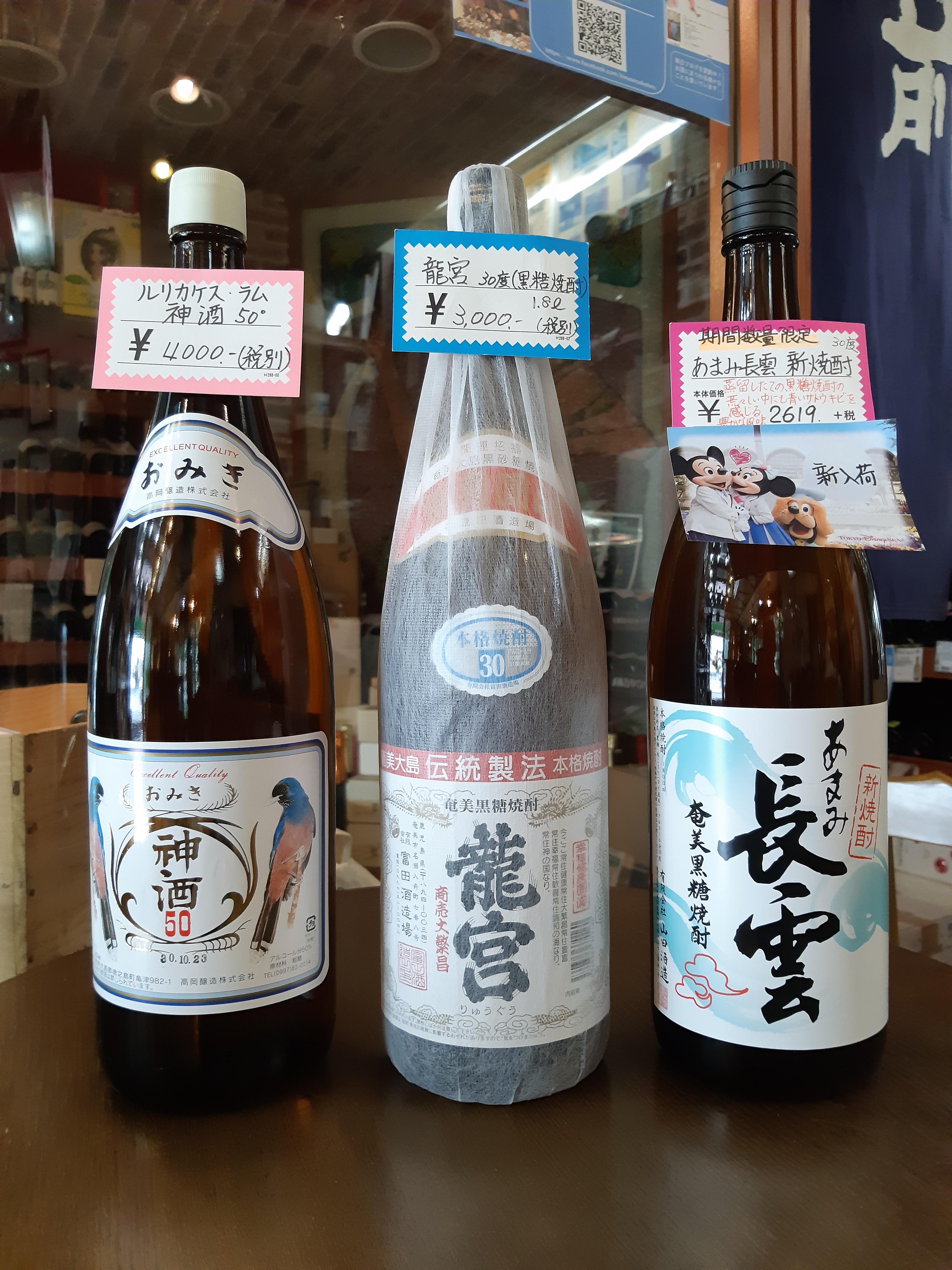 そこで今日は、色々ある黒糖焼酎の中でも、香りの甘さが際立っている物を三つご紹介させて頂きます。全量甕壺仕込みで知られる富田酒造さんが造る『龍宮・30度』は、芳醇なコクと旨味が特徴です。同じく、山田酒造さんが造る『長雲・30度』は、今年の新焼酎を詰めており、爽やかなサトウキビの甘みと香りが楽しめます。