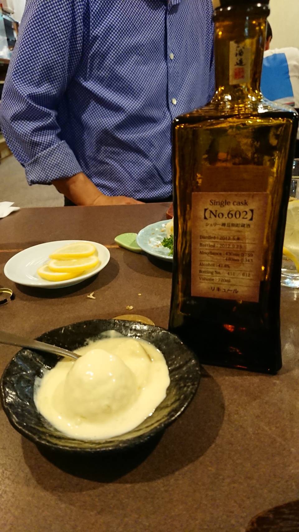 また今回はデザートにバニラアイスを出していただきました。このバニラアイスに、樽熟の焼酎を少しかけて召し上がっていただくという、初めての試みに挑戦してみました。とっても贅沢な大人のアイスに皆さんとても喜ばれていました。