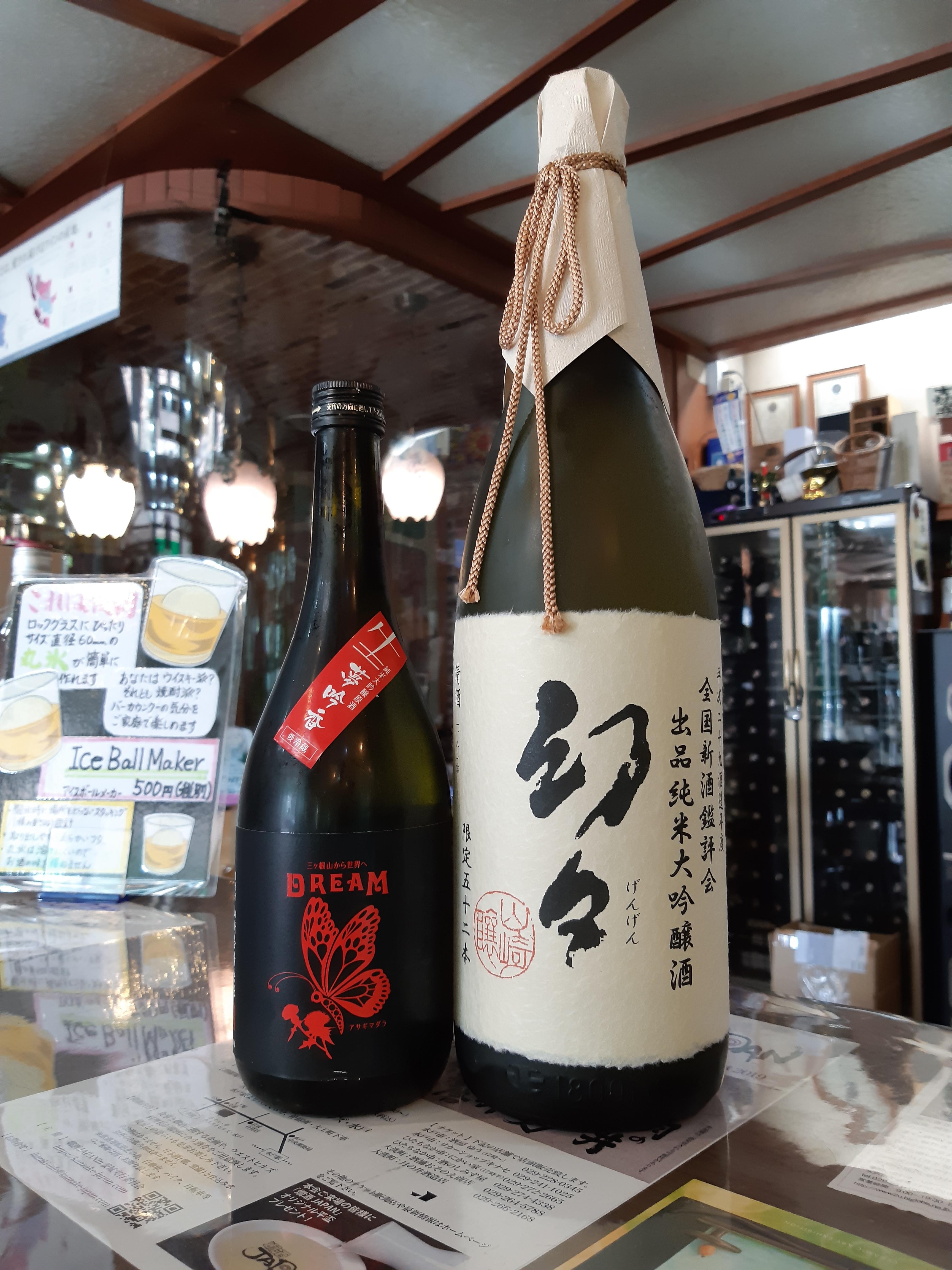 他にも、先代社長の未来への想いが込められた『山﨑醸(やまざきかもし)シリーズ』には、深紅の蝶々が描かれた『山﨑醸・夢吟香・ドリーム』があります。海を渡る蝶として知られる『アサギマダラ』のように、各地に広まって欲しいという願いが込められた逸品です。鑑評会出品酒『幻々(げんげん)』は、1.8L 52本しか生産されない超限定品ですが、一度は味わって頂きたいお酒です。