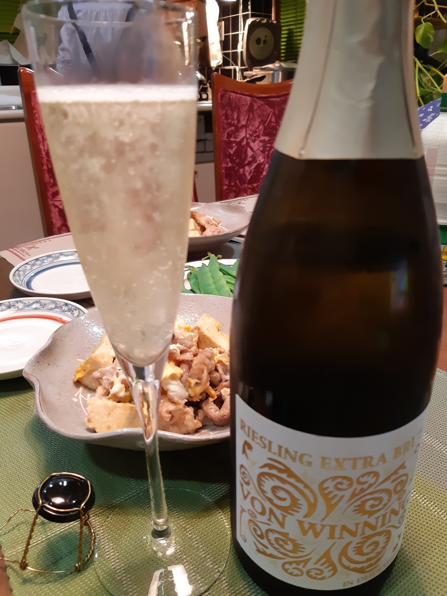 ちなみに、『フォン・ウイニング』がワイナリーの名前で、『リースリング』はブドウ品種の名前、『エクストラ・ブリュット』は辛口の意味を持ち、『ゼクト』とはスパークリングワインの事です。高級感溢れるお洒落なラベルも良いですね~!