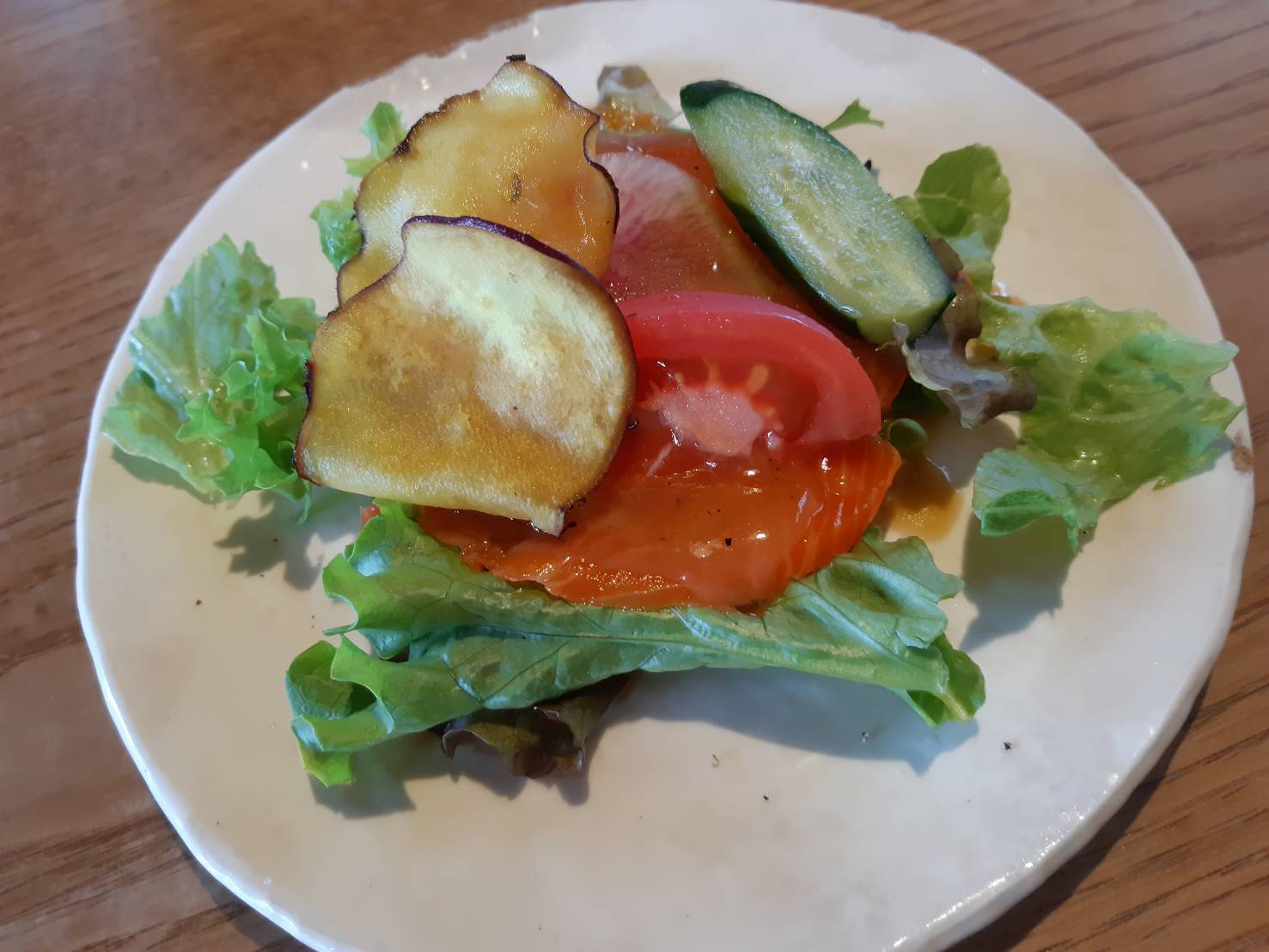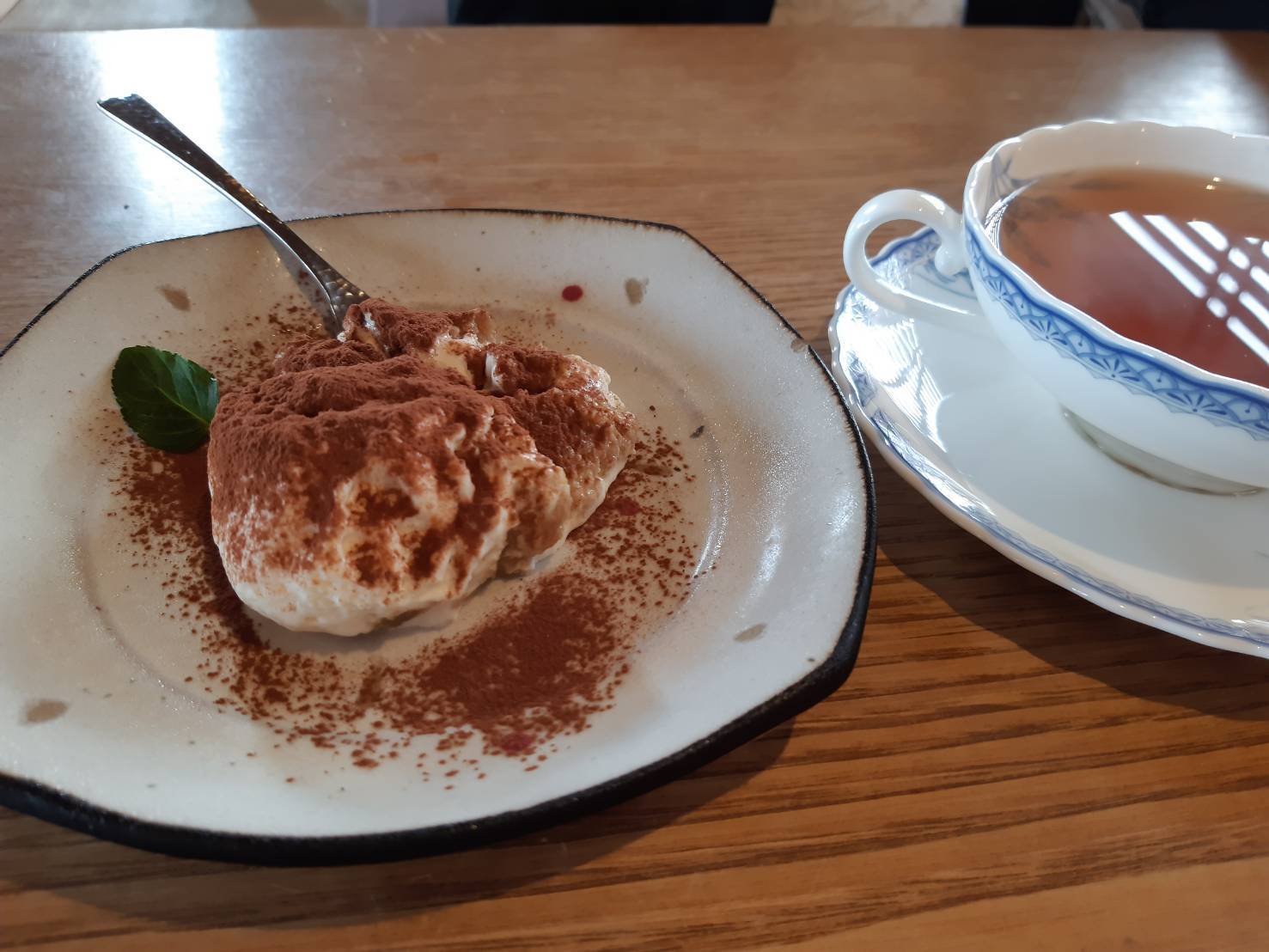 この日は、生ウニのスパゲッティがズワイガニに変更となっていましたが、合わせて、サーモンのマリネとチーズケーキにコーヒーを付けました。お魚ランチは、ヒラメのグリルで、本日のキッシュとティラミス、紅茶を選びました!