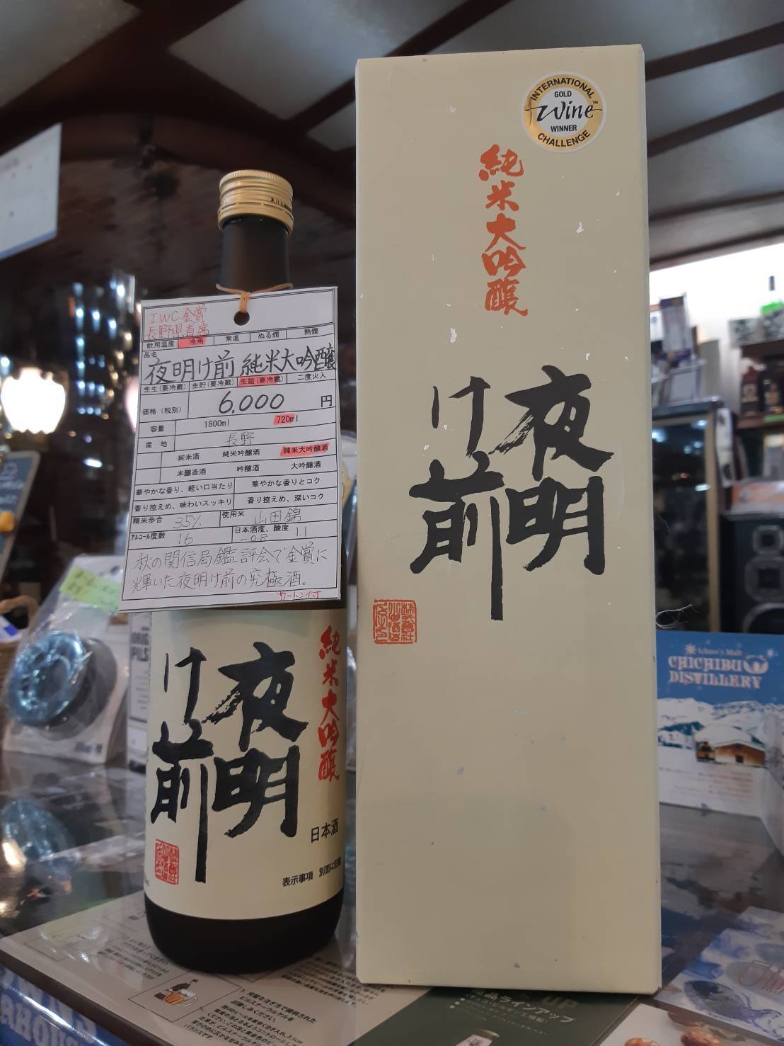 他にもこの時期ならではの限定品が入荷してきています。高級感あふれる黒瓶に詰められた『夜明け前・純米大吟醸』は、長野県で今大注目の酒米『金紋錦』で醸しています。また、秋の関東信越国税局鑑評会やIWC(インターナショナルワインチャレンジ)、長野県鑑評会、などで優秀な成績を受賞した『夜明け前・純米大吟醸・山田錦』は、夜明け前ファンならずとも一度は口にしたい逸品ですね~!