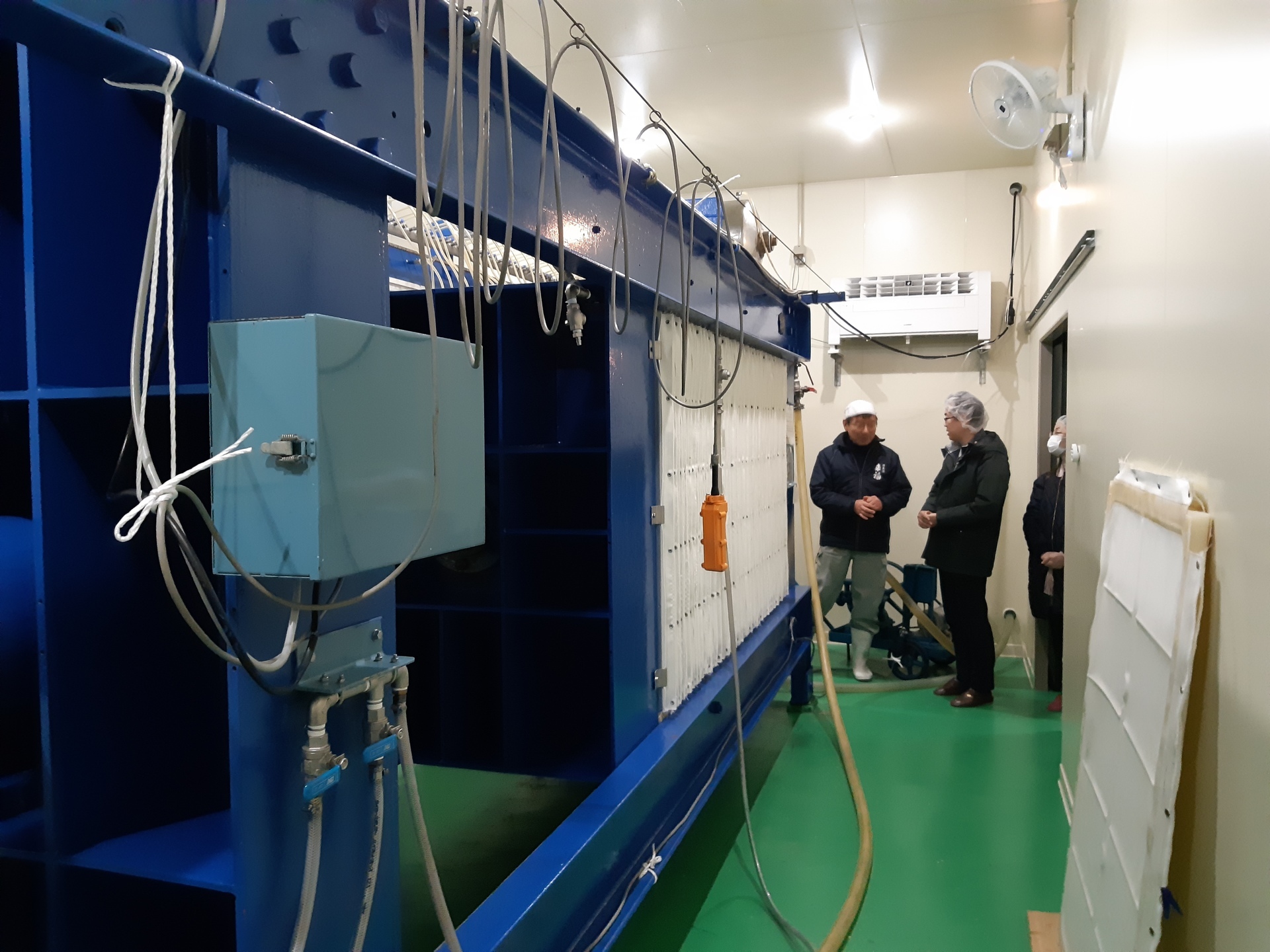 さらに、出来上がったお酒の品質を劣化させないために、お酒を搾る場所全体を冷蔵庫にしたり、パストライザー火入れ機を使っています。他にも、こんなものまで導入しているのか・・・!?と、いうものまであり、今後の酒造りを見据えて準備しているとの事。本当に見れば見るほど、聞けば聞くほど、驚きと感心の連続でした。最後に、杜氏お勧めのお酒を試飲させていただき、この日の蔵元見学は終了しました。