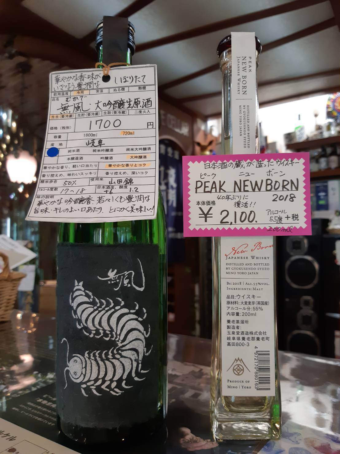 今日は、岐阜県の玉泉堂酒造さんが造る日本酒『無風(むかで)』と40年ぶりに復活した『ピークウイスキー』をご紹介させていただきます。
