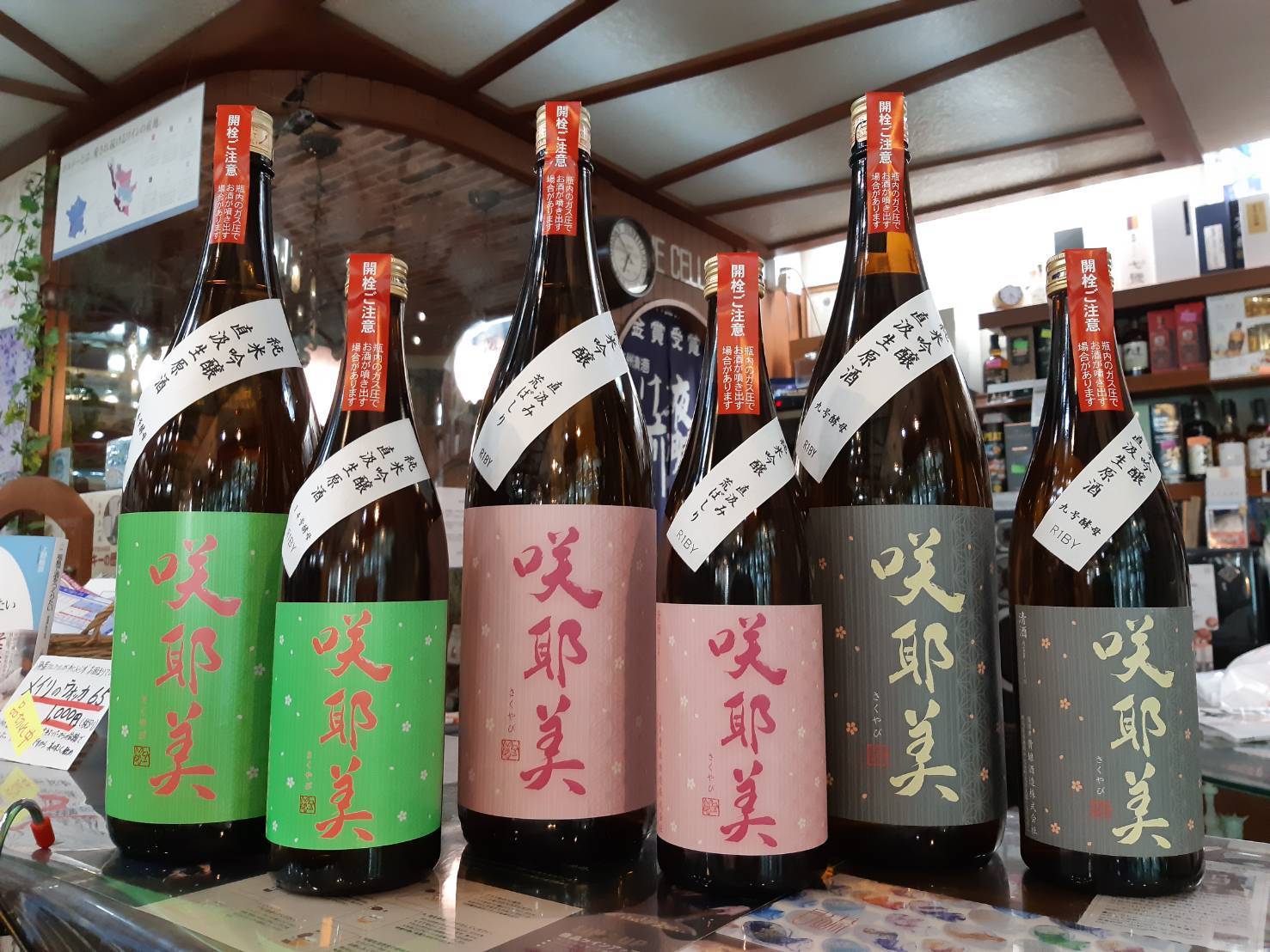今や当店でも安定した人気を誇る『咲耶美』の代表銘柄と言えば、華やかな香りが持ち味の通称『ピンクラベル』と、しっかりとした味わいと後口のキレを持つ『グレーラベル』の二種類で、他にも季節限定品として『ピンクラベル』の夏バージョンの『ブルーラベル』、『グレーラベル』の秋上がり『オレンジラベル』があります。