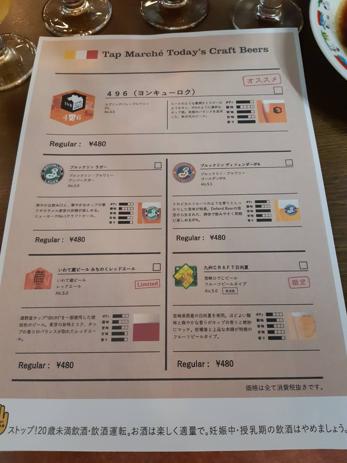今回最初に提供するビールは、今話題の東京代官山にあるスプリングヴァレーブルワリー(SVB)の代表銘柄『496』を始め、ニューヨーク発のクラフトビール『ブルックリンブルワリー』の二種類、東北岩手からは濃厚な味わいの『いわてレッドエール』、フルーツビール部門からは、宮崎県の日向夏を使った爽やかな味わいのビールなど、すべて飲んでみたい逸品ぞろいです(笑)
