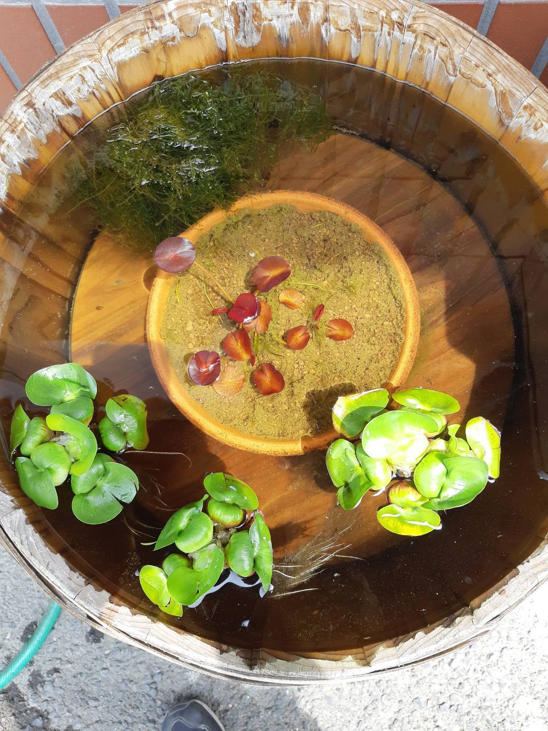以前、土の中に虫の幼虫が残っていて、植えたばかりのゴーヤーの根を食べられて枯れてしまったので、土の入れ替えは念入りに行うようにしています(笑)あとは、台風が来なければ、今年の夏も立派なグリーンカーテンが出来上がることでしょう!合わせて、メダカ用の樽にホテイアオイを投入して、産卵の準備も万端です。ご来店の際は、是非ご覧ください。