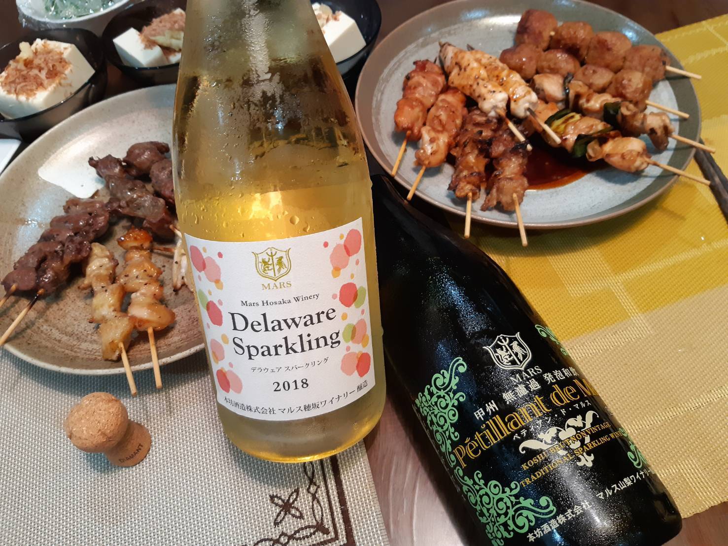 フレッシュな酸味と程良いガス感があり、果実的な甘みがバランス良く、とても飲みやすく感じられます。この日の料理の焼き鳥の塩、甘辛タレとも良く合います。ピンクの水玉模様のラベルが可愛らしく、食卓を明るく華やかに彩ってくれます。