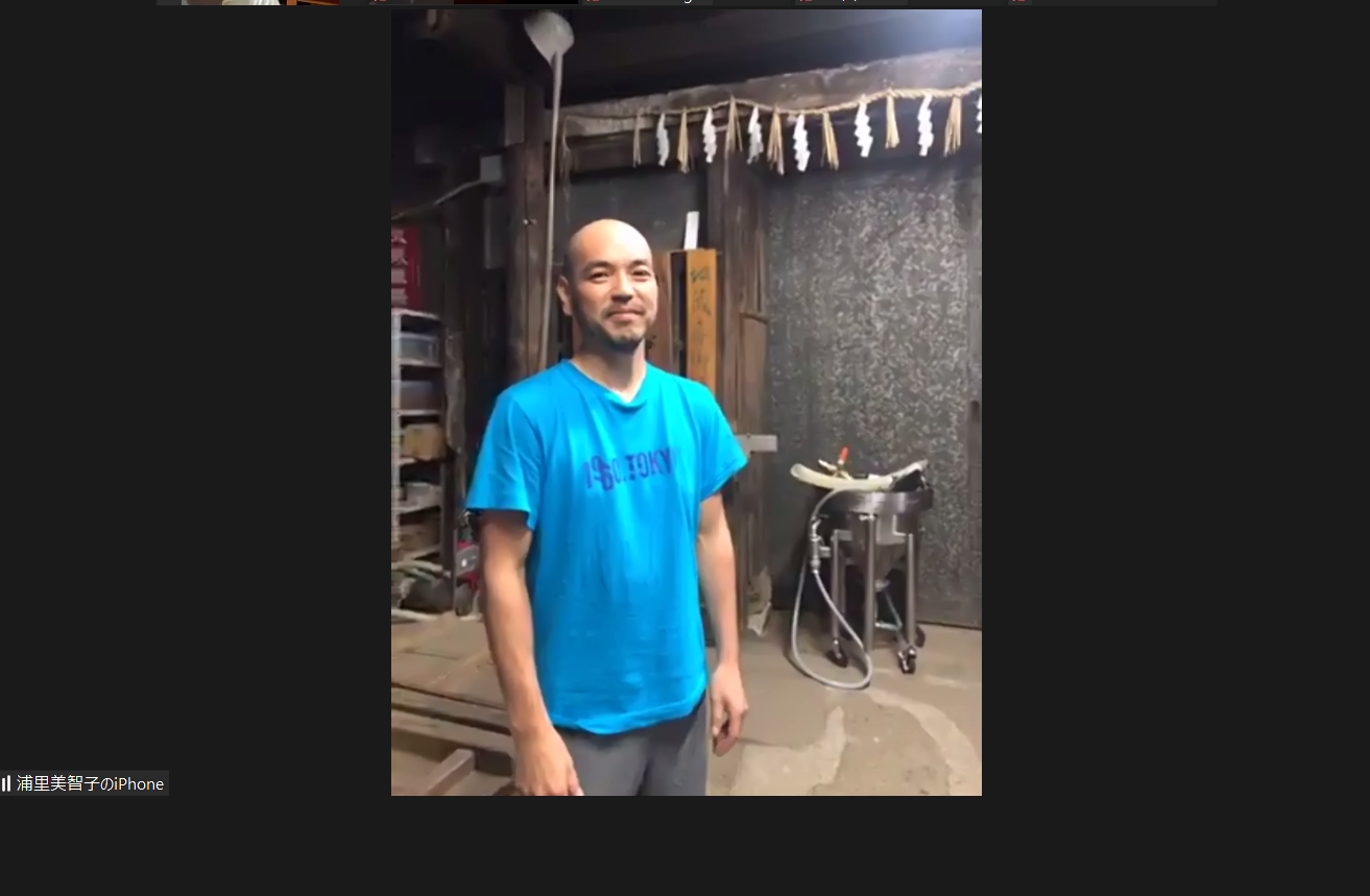 まず初めに、自分の好きな銘柄で乾杯し、各自がこの日用意した酒器やおつまみを紹介して頂きました。その後、結城酒造さんの浦里杜氏のお酒紹介に合わせて、各自でお酒を楽しんでいただきました。続いて行ったバーチャル蔵見学会では、社長のサプライズ登場やチャット機能を使った参加者の方から様々な質問が飛び出し、あたかもその場にいるかのようなライブ感がありました。