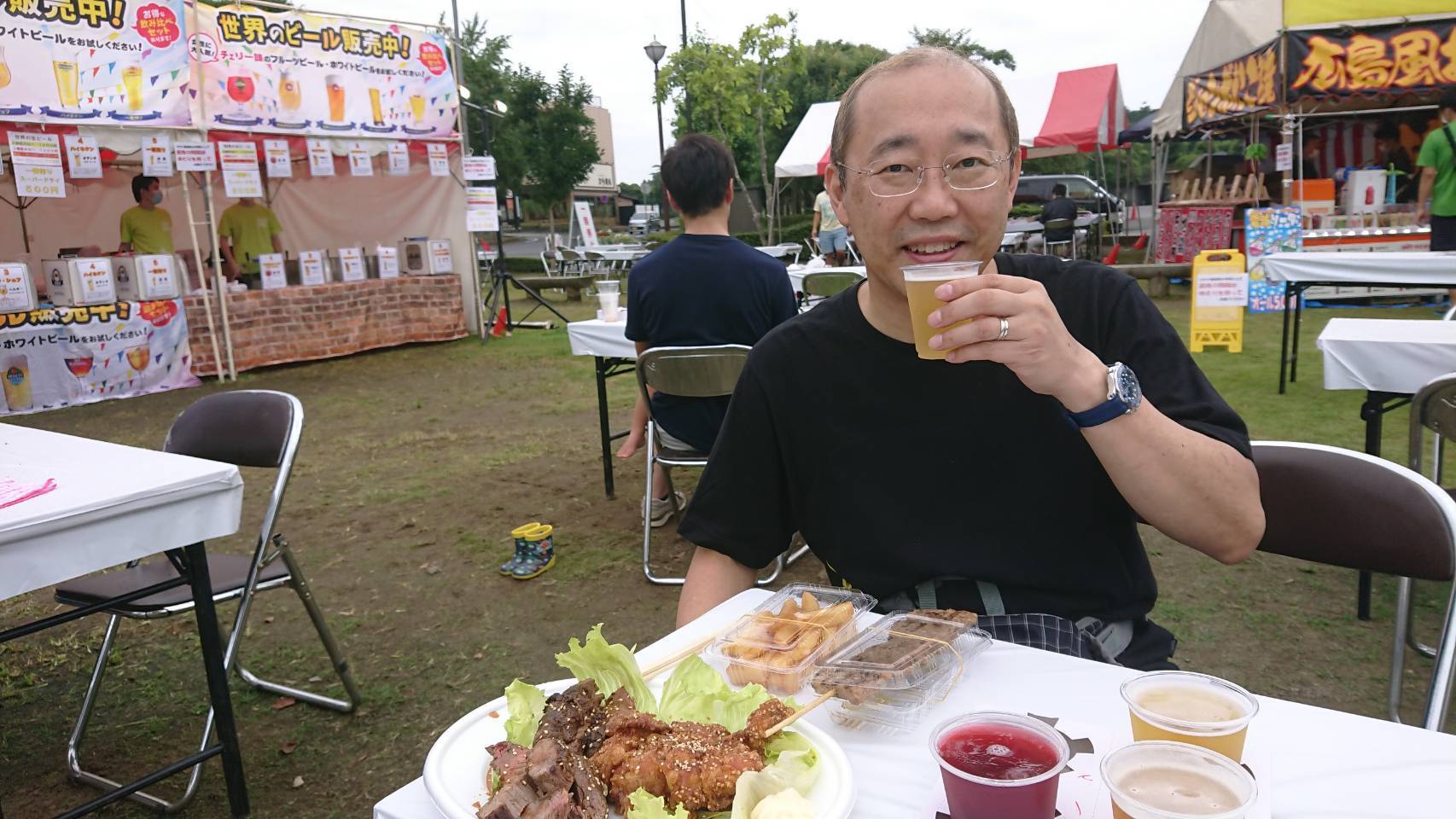 私も昨日は休みでしたので、近くの千波湖畔で開催されている『肉フェスタ&ビアフェスタ水戸2020』に散歩を兼ねて行ってきました。四種類のクラフトビール飲み比べセットと肉のおつまみプレートを注文して、ビアフェストの始まりです(笑) もう少し楽しみたかったのですが、雨が降り出してきたので早々に撤退しました。
