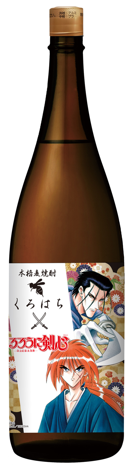 麦焼酎『くろはち×るろうに剣心』は、黒麹仕込みの常圧蒸留で造った、個性が際立った味わいです。『斎藤一さん』が信念を貫き通すように、骨太でガツンとしたインパクトのある味わいです。飲み進めると、熟成による香ばしいふくよかな香りと深いコクと甘みが広がります。その味わいはまるで、芯は強いが包み込むような優しさを併せ持つ『神谷薫さん』のイメージと重なります。