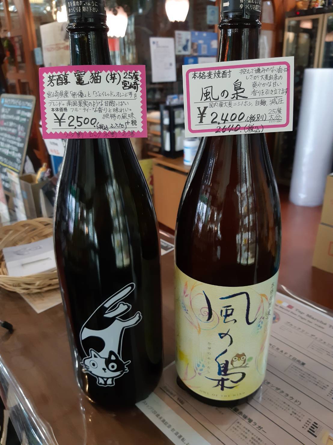 今日は、宮崎県の落合酒造さんから届いたネコ(芋焼酎)とフクロウ(麦焼酎)をご紹介したいと思います。ちなみに、11月1日は『本格焼酎の日』なので、焼酎好きの方には覚えておいていただきたい記念日の一つです。