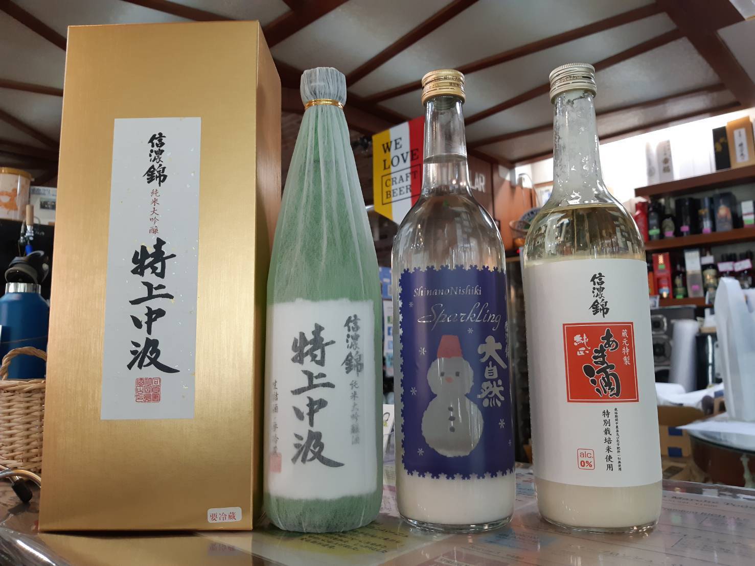 信濃錦さんが造る新酒の代名詞ともいえるのが、コカ・コーラ並みのガス感がある活性にごり酒『信濃錦スパークリング大自然』です。耐圧のボトルと耐圧のキャップからそのガス感の強さが計り知れる逸品です。現在では、いろいろな蔵元から発売されている活性ににごり酒ですが、発売当初はとても珍しく、活性にごり酒の先駆者と言うべき存在でしたが、今季を持って一時休売となります。この機会に是非、最後の『大自然』をお楽しみください。また、栓を開ける際にはくれぐれもお気を付けください。