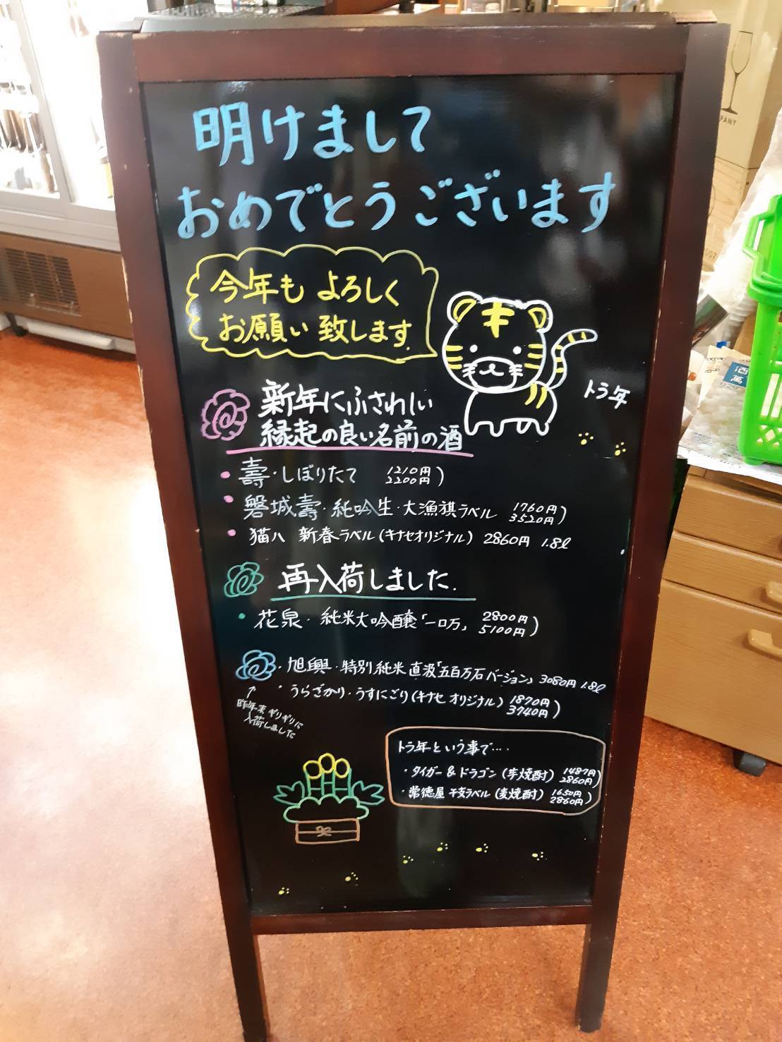 まずは新春を飾る縁起の良い名前の日本酒のしぼりたて新酒はいかがでしょうか?見るからに縁起の良さそうな『壽・しぼりたて』や『磐城壽・大漁旗ラベル』、そして当店オリジナルの『猫八・新春ラベル』などがありますので、お年賀のご贈答品としてお勧めです!ほかにも、年末ぎりぎりになって入荷してきた『うらざかり・うすにごり』や再入荷の『花泉・一ロ万』などもございますので、飲み逃してしまったと言う方は是非!