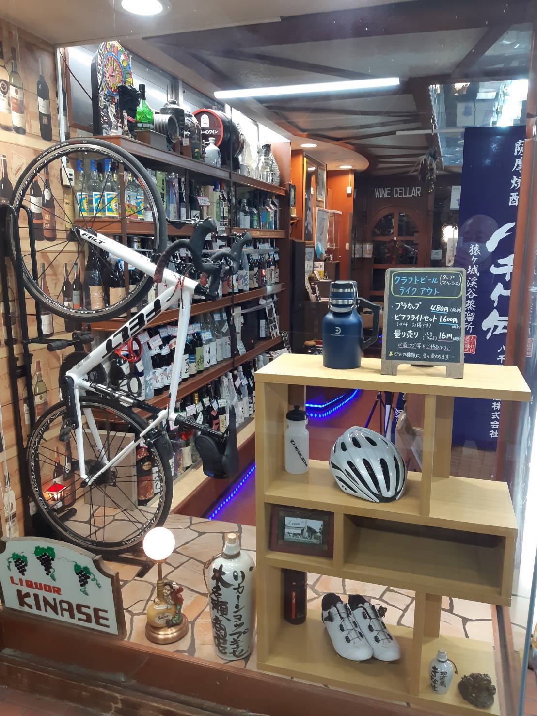 続いては、店の顔とも言えるショウウインドウの模様替えです!ここはいつの間にか私の好きなものを置く趣味のようなコーナーになっておりまして、以前はミニバイクやドラムセットなどを飾っていましたが、最近は今私がはまっているロードバイク置き場になっています。今に始まったことではありませんが(笑)、これでは酒屋ではなく、自転車屋なのでは・・・?と思われてしまうので、縦置きのサイクルラックを置き、綺麗に片づけて、当店オリジナルの日本酒(猫八、めでたい、富久心)を飾っています。多少なりにも酒屋らしさを演出しました(笑)。店頭には、サイクルスタンドも置いておりますので、多くのサイクリストにも気軽に立ち寄っていただけると嬉しいです。