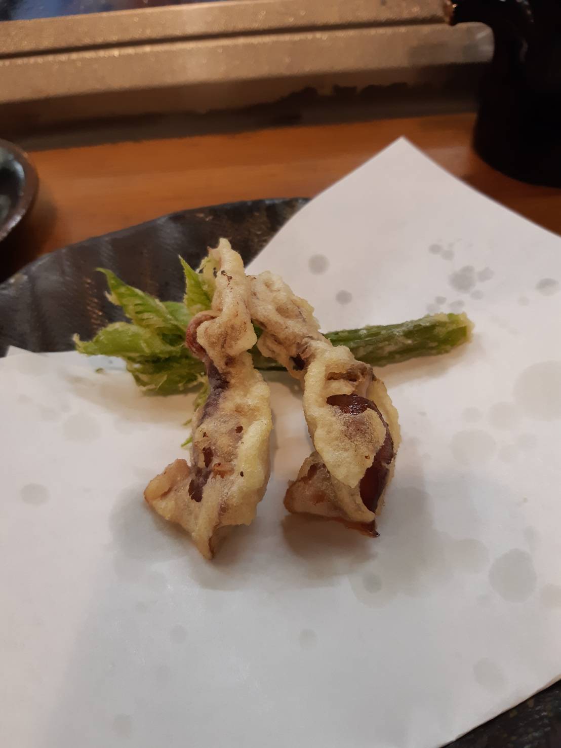そんな旬の山菜に合わせて、日本酒は、ほのかな甘みと軽やかなガス感が楽しめる武勇さんの夏酒を頂きました。その後は、店主自慢の山菜の天ぷらが次から次へと運ばれてきて、まさに山菜三昧!今回味わった山菜は、ニセアカシア、アザミ、コゴミ、たらの芽、こしあぶら、ホタルイカ、白海老とコシアブラのかき揚げ、です!アカムツの煮付けも最高でしたね。