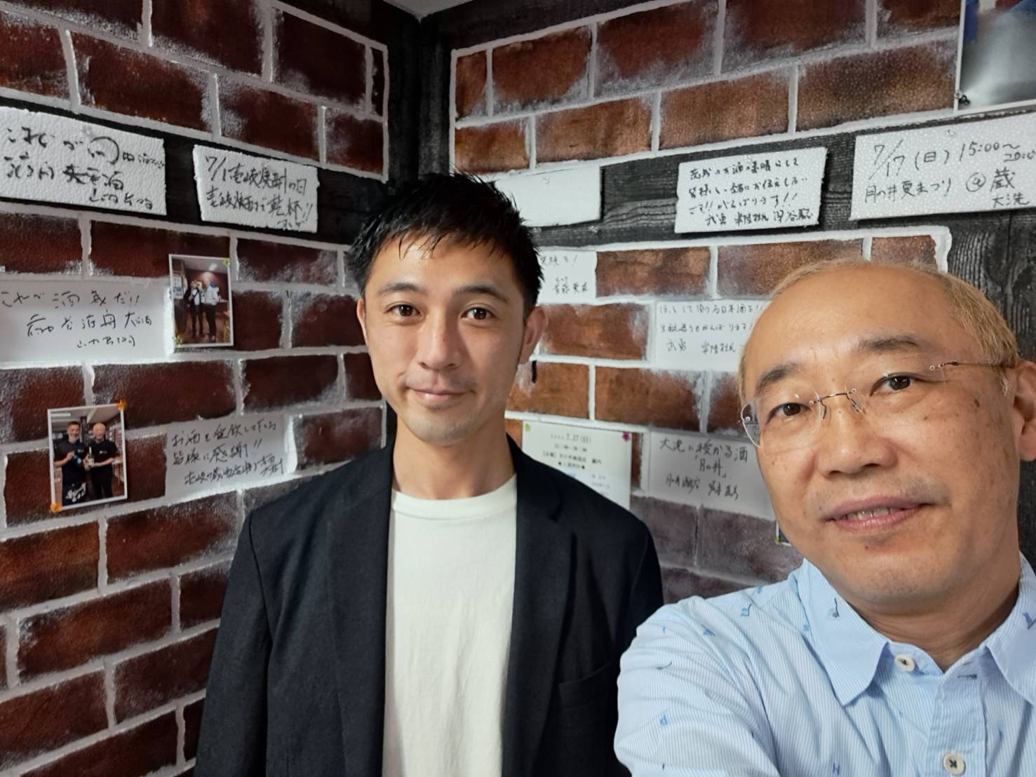 曇り空のハッキリとしない天気ですが、今日から三連休と言う方も多いと思います。そんな中、伊予賀儀屋のブランドで知られる愛媛県の成龍酒造さんの首藤英友さんが、『立ち飲みきなせ』に駆けつけてくれました!短い時間でしたが、久しぶりにお会いしていろいろな話をすることが出来ました。立飲みきなせは、5,6,7月の3か月限定営業ですので、今月末で閉店となりますが、また別の機会を見つけて伊予賀儀屋さんの蔵元イベントを開催できたらいいなと思っております。