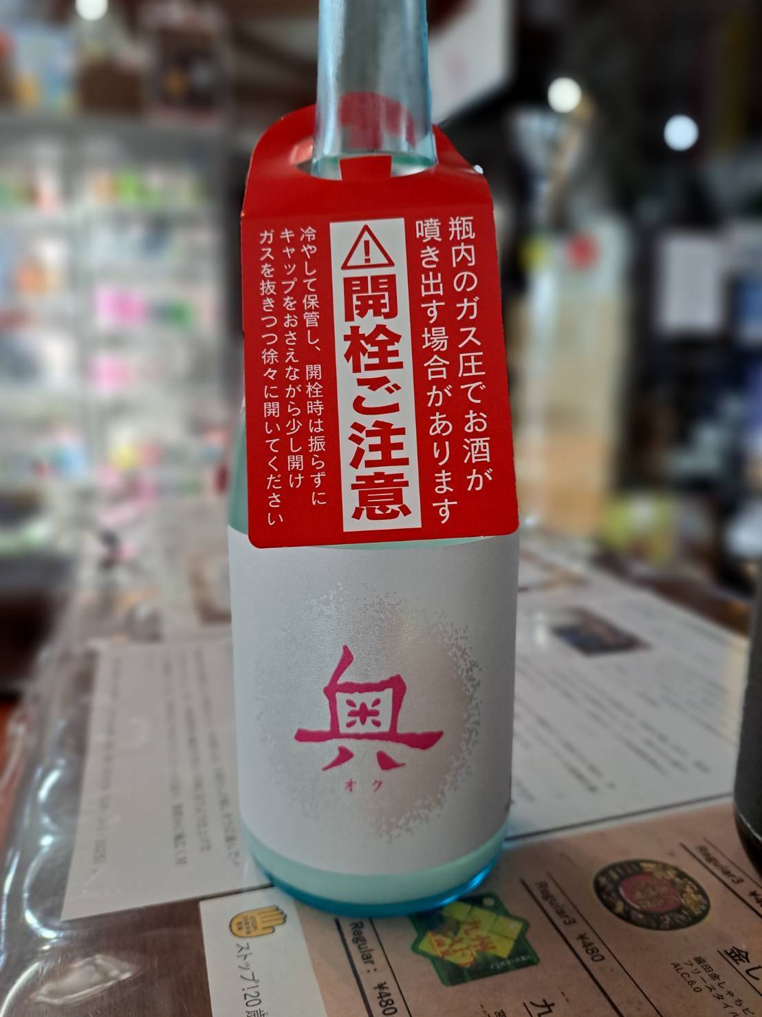 通常の『奥・スパークリング』よりも滓の量が少なくサラリとした味わいが特徴です。その見た目とは裏腹に、強力なガス感とアルコール度数13度の軽やかな味わいがマッチした、清涼感抜群の味わいは今の季節にお勧めの一本です。