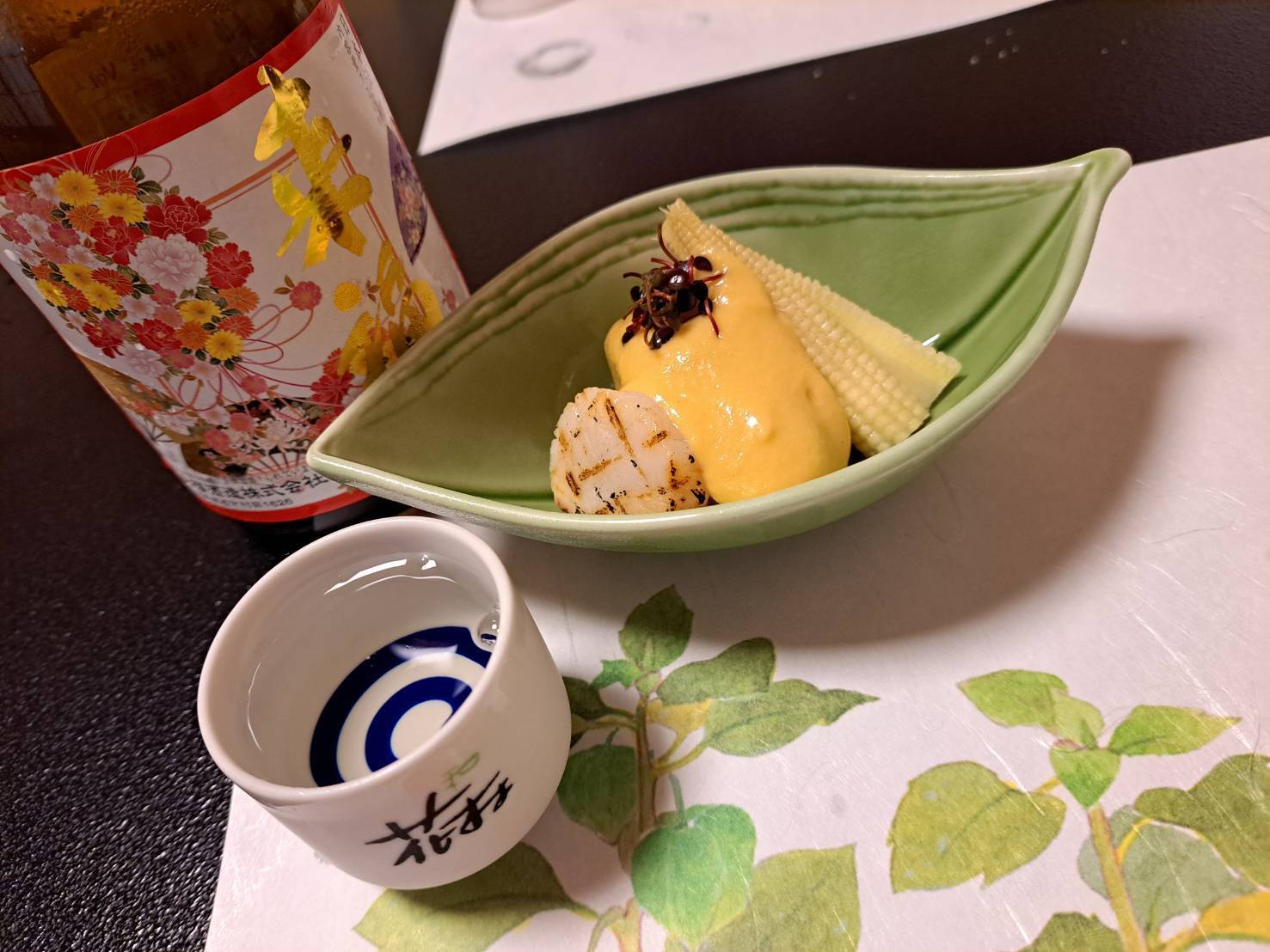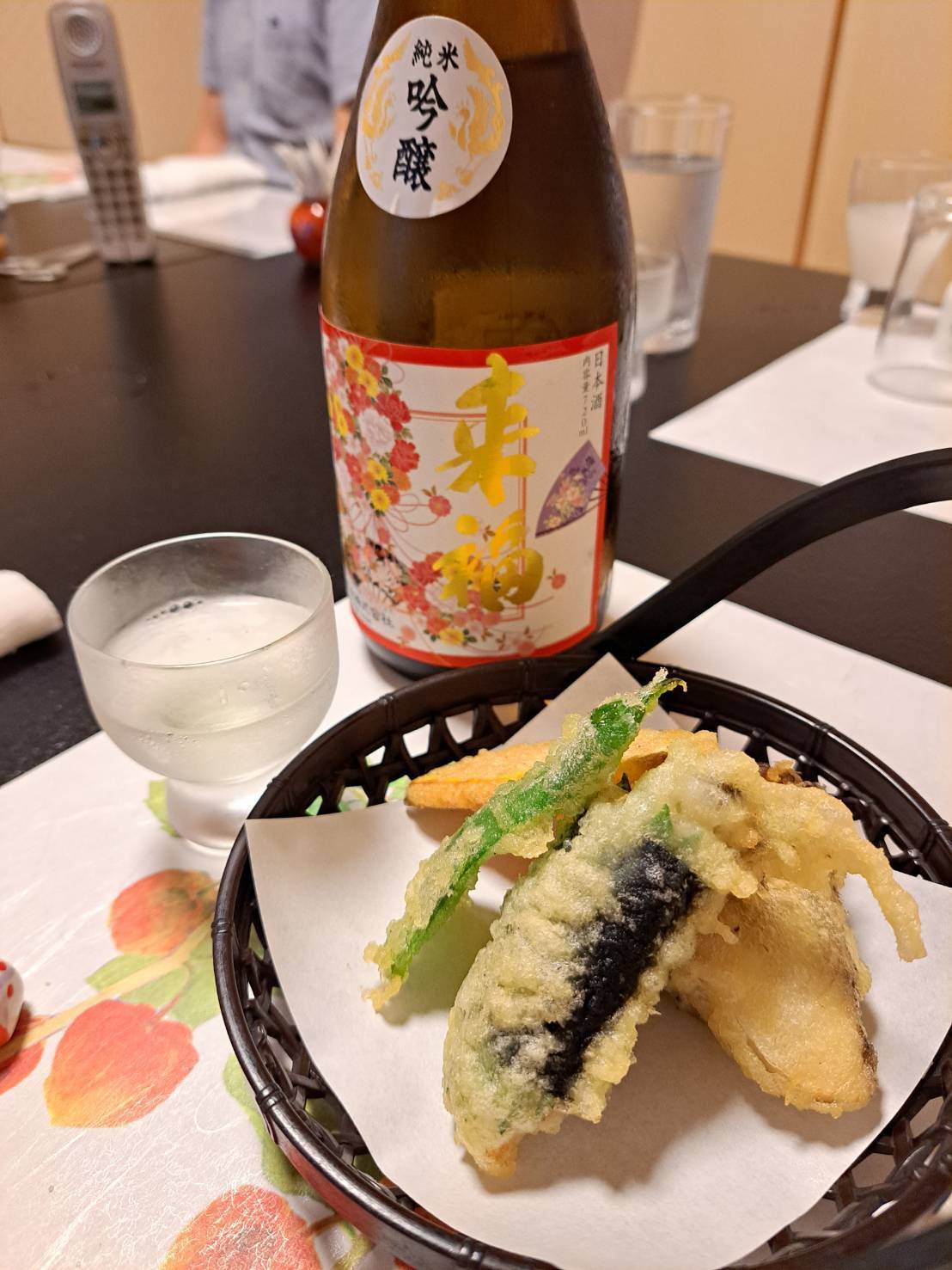 中でも、牡蠣を大葉と海苔で巻いた天ぷらが絶品で、トロリとした半生の牡蠣とキレのある日本酒が絶妙のマッチングです!ほかにも、ホタテとヤングコーンのぬた和えなど、目でも舌でも楽しむことが出来ました。
