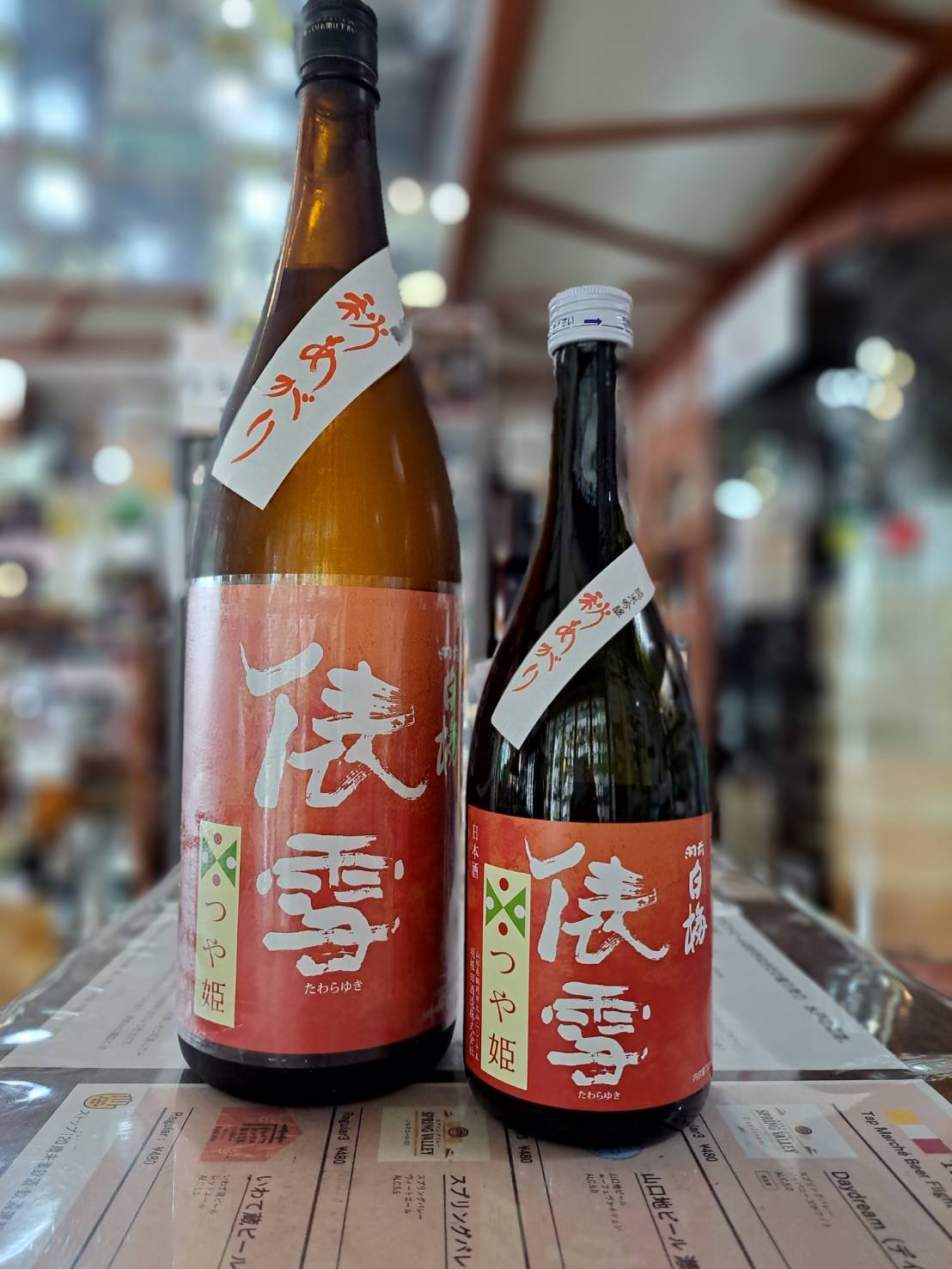 羽根田酒造さんの代表銘柄と言えば『羽前白梅』ですが、季節の味わいを表現しているのが『俵雪シリーズ』です。搾りたての新酒の生に始まり、夏酒と続き、今回の『秋あがり』で完結します。『羽前白梅・純米吟醸・俵雪・秋あがり』は、山形県産『つや姫(精米歩合50%)』で醸したお酒を、蔵内の冷蔵庫にて貯蔵熟成させることで、柔らかで円やかな飲み口の中にもしっかりとしたコクと旨味が感じられる逸品です。