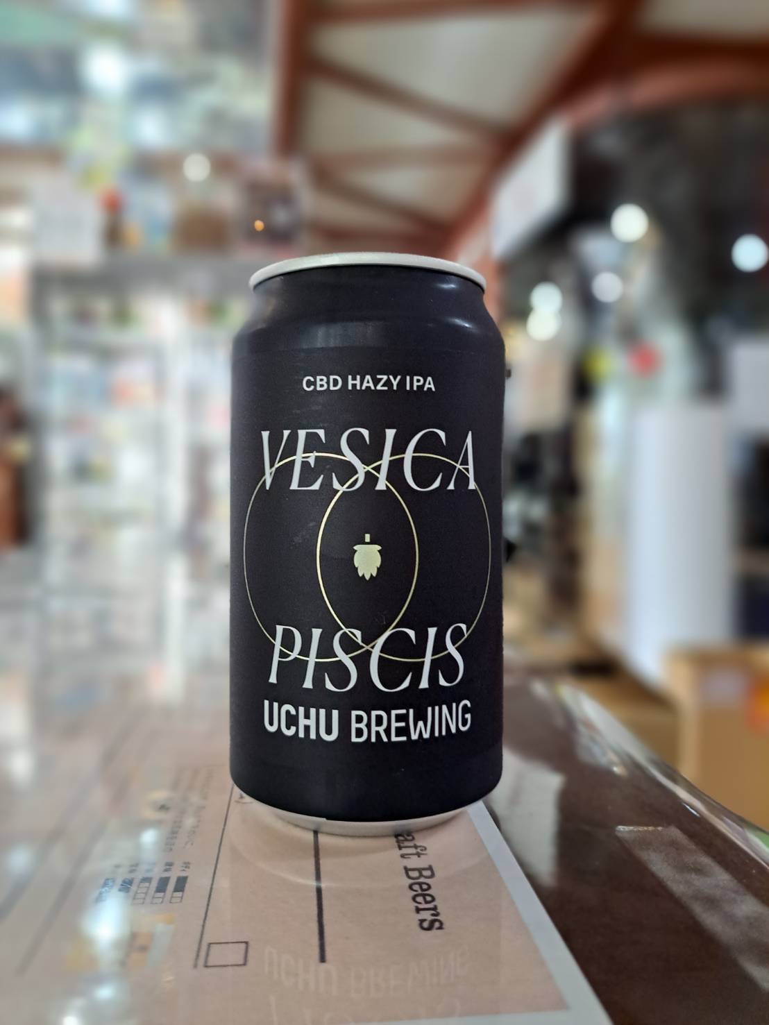 そして、うちゅうブルーイングさんからは、待望の最新作『VESICA PISCIS(ヴェシカパイシス)』が入荷してきました!麦芽(カナダ製造)、オーツ麦、ホップ、CBD(カンナビジオール)と4種類のホップ(Mosaic,Simcoe,Columbus,Galaxy)で造ったアルコール度数7%のCBD HAZY IPAです。