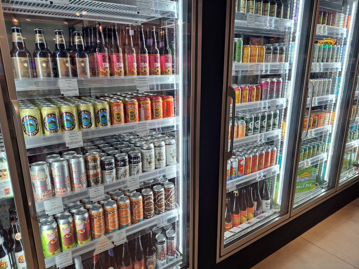 店奥の壁一面は冷蔵庫になっており、個性豊かなアメリカンクラフトビールが、並んでいる姿は壮観です!それぞれ、IPAやヘイジー、サワー、サイダー、等と味わいごとに分かれているので、初めての方にも選びやすいと思います。